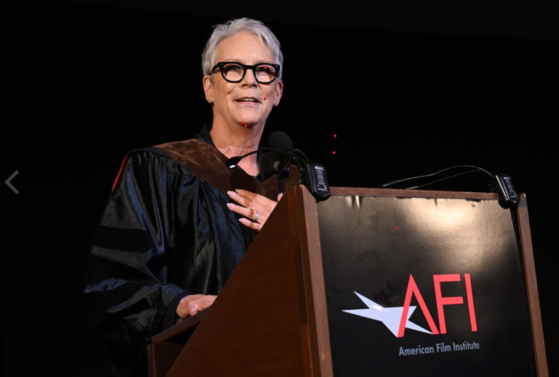 Jamie Lee Curtis accepting an honorary doctorate at the AFI graduation.