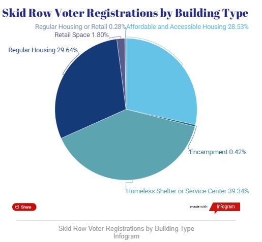 Along with Skid Row homeless service shelters, affordable housing units also saw an atypical increase in voter registration, bringing in nearly 200 new voters within the last couple viable weeks of voter registration.