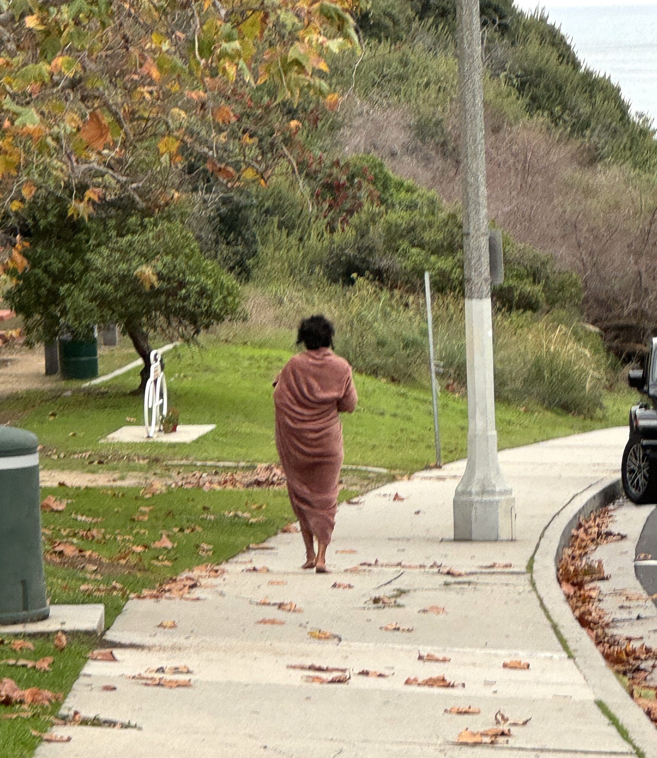 When this homeless woman, wearing only a blanket, was spotted, the Pacific Palisades Task Force on Homelessness was called and someone responded immediately.