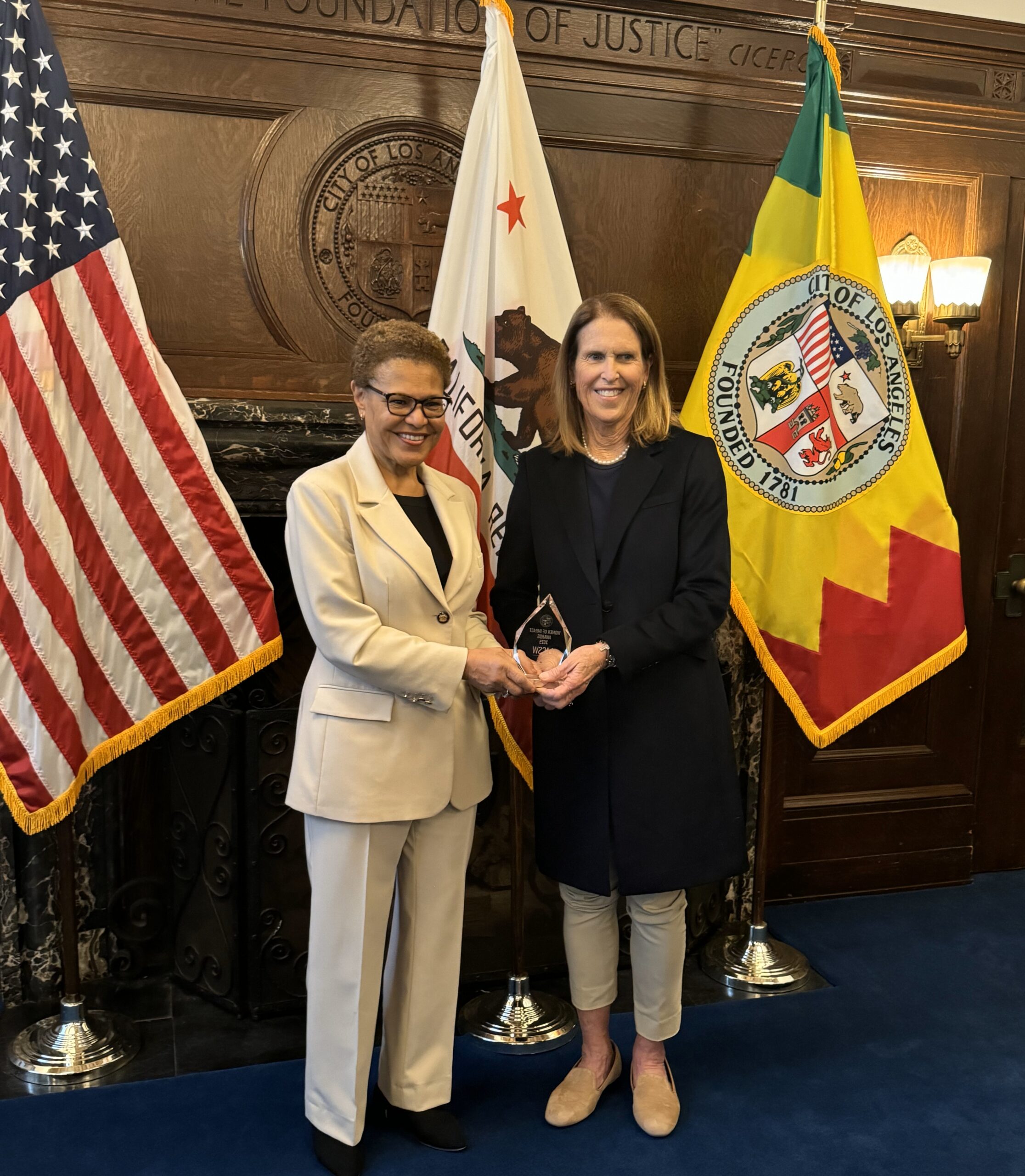Each of the 15 Councilmembers make a recommendation from their district for an individual to be recognized. Kohl’s award was special because it came directly from the Mayor. She was one of only two people recognized; the other was Michele Siqueiros, who serves on the Mayor’s Fund for Los Angles, Planned Parenthood Action Project and the Pitzer College Board of Trustees. Siqueiros and Kohl met with the Mayor briefly before the ceremony.