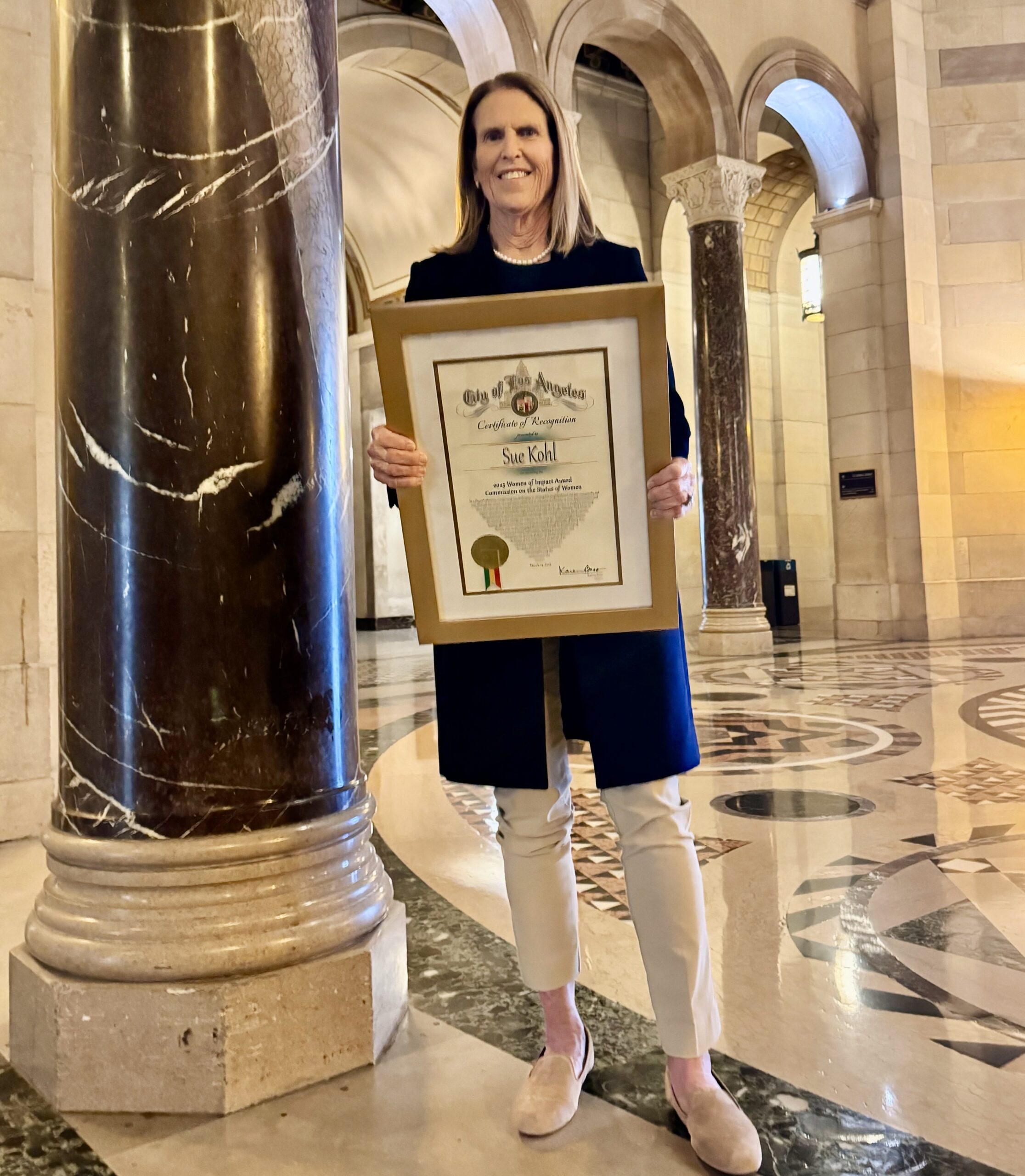 In the certificate presented to Kohl by Bass, it stated “Each year, the Civil + Human Rights and Equity Department (L.A. Civil Rights) along with its Commission on the Status of Woman, invests in women and girls by providing services and community-building events to create a more just Los Angeles. The Women of Impact Awards honors women who have demonstrated their commitment to advancing the well-being of Angelenos.”