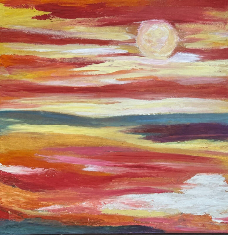 The exhibition showcases pieces from Thangavelu’s Floral and Oceanscapes series, including vivid portrayals of blooming landscapes, moonlit waters and radiant sunsets. Created on canvas and wood panels, these paintings invite viewers to reflect on the beauty of the natural world, as well as the strength found in transformation.