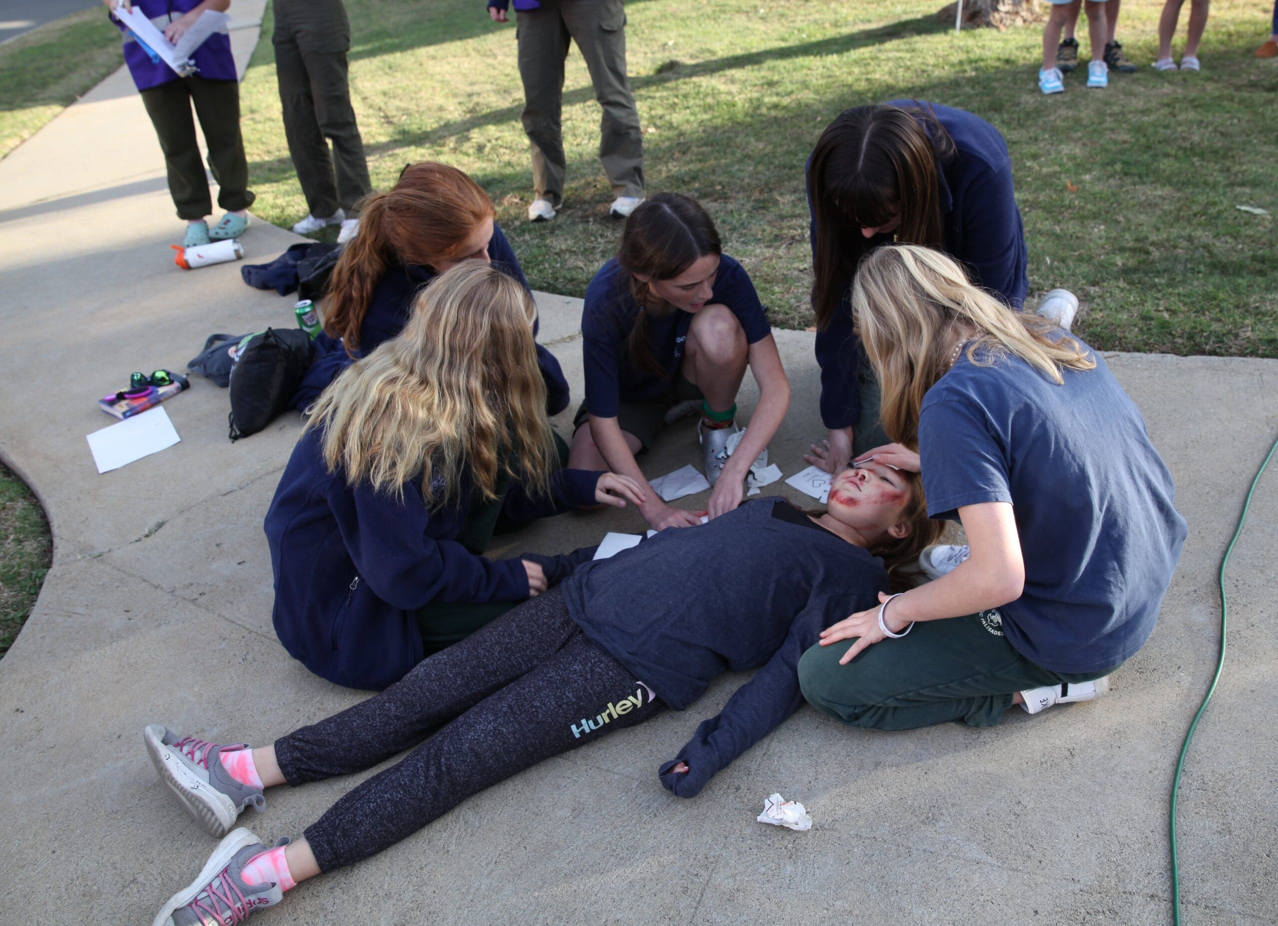 Troop 223 held a disaster preparedness event. This long-held tradition involves realistic scenes that include crashed cars and volunteers undergoing makeup, so the injuries appear realistic.