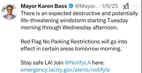 The suit notes that on “January 6, 2025, the NWS in Los Angeles issued its most severe fire weather warning – “LIFE-THREATENING & DESTRUCTIVE WINDSTORM!!!” – for several areas, including the area that the Palisades Fire would eventually ravage.”