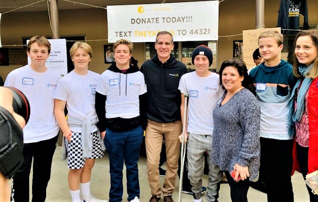 The young men of NLYM and their moms joined a “Giving Spirt” event for homelessness today at Brentwood Presbyterian Church on December 14 and bumped into LA Mayor, Eric Garcetti.