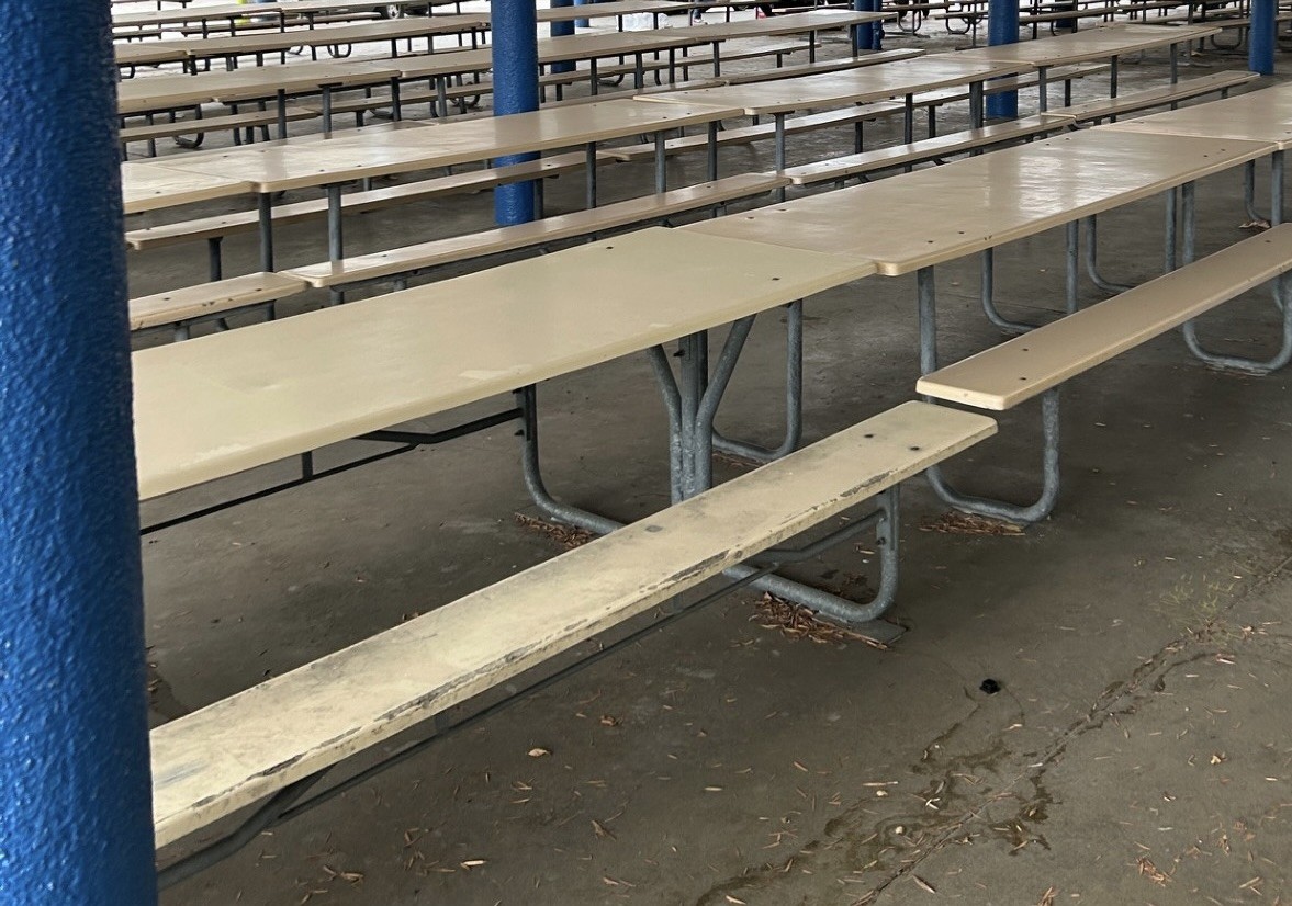 These tables and benches at Palisades High School are at least 20 years old, but with help from Rotary and the Community Council, they will be replaced.