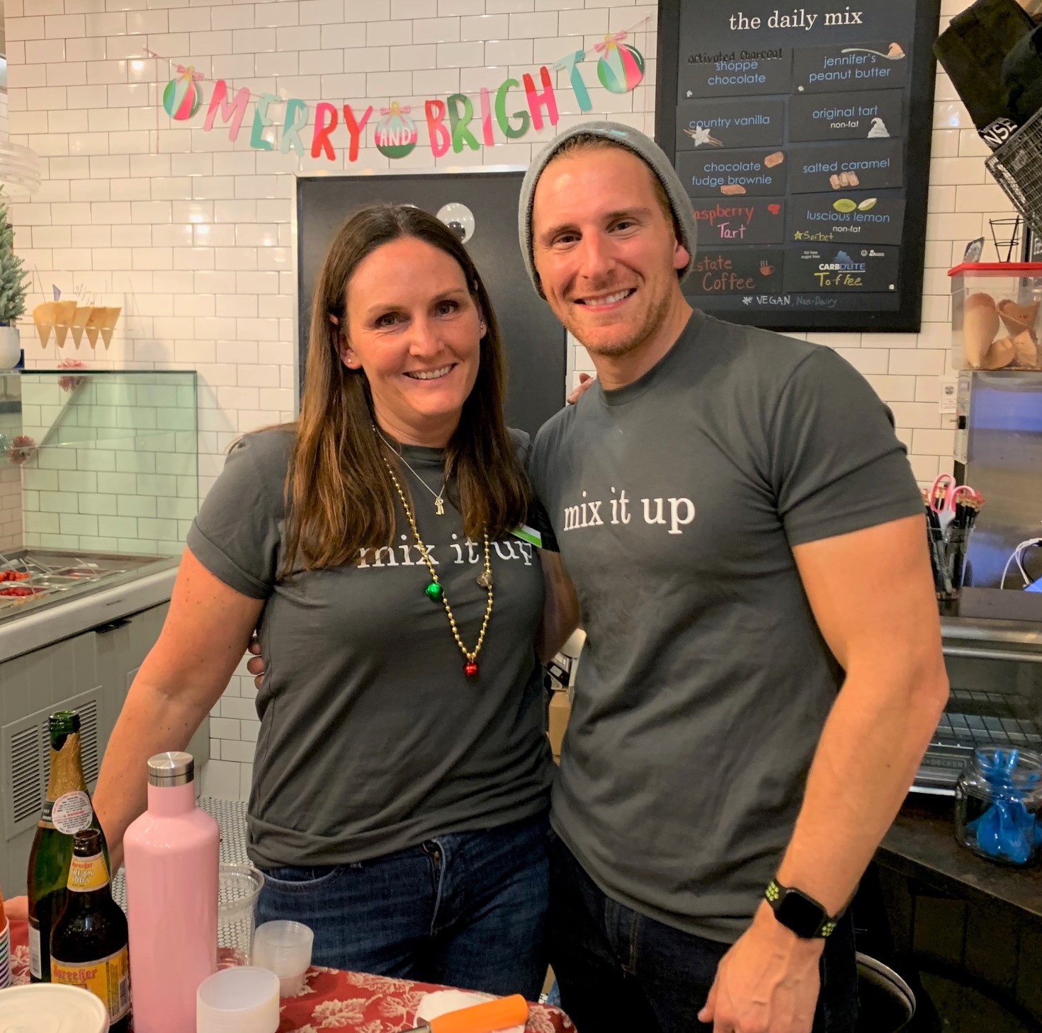 Christine and Adam Wolfson, new owners of the Yogurt Shoppe on Swarthmore, participated in the Chamber of Commerce Holiday Stroll on December 6.
