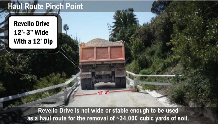 Local residents, many of whom lost their homes in the January 7 fire, and the Castellamare Homeowners Association oppose this development on safety grounds – active landslide, fire and emergency access (paramedics) and lack of evacuation.