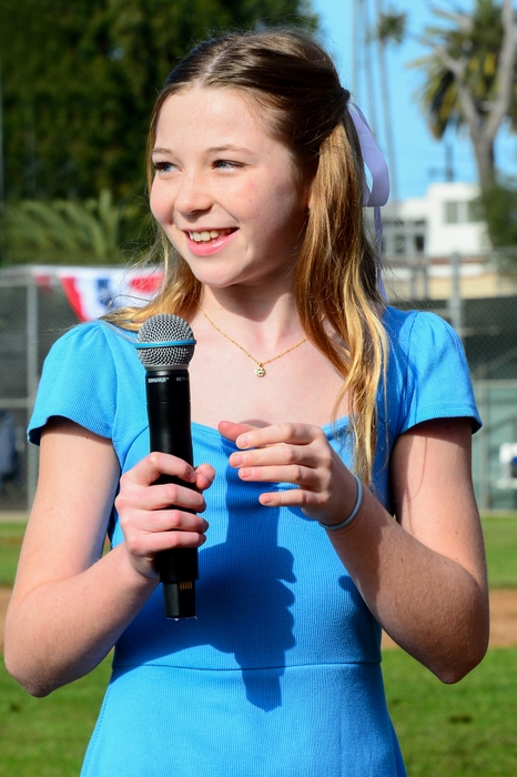 On tap to sing the National Anthem was St. Matthew’s fifth grader Grace Pithier. The microphone shorted out several times, but as Benton said, “She was great! She sang right through it.”