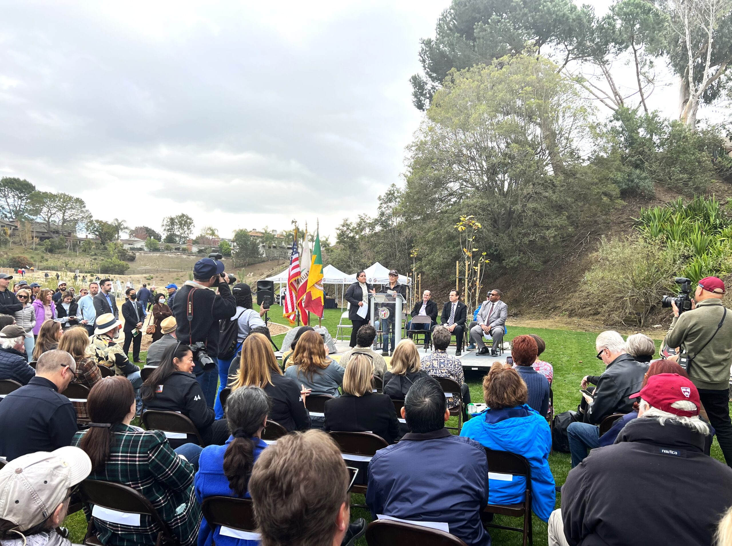Saturday’s ceremony, held on a long stretch of inviting grass below the Recreation Center, was emceed by outgoing Councilmember Mike Bonin, who was determined to get the park opened before his last day in office on Sunday.