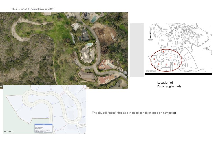 The saga started when Kavanaugh built 815 Paseo Miramar, which is owned by Kwahi Leonard. Kavanugh also owned six additional lots in the same area. He initially tried to have that portion of Paseo Miramar vacated, so that he could develop a gated community for his lots 646-701.
