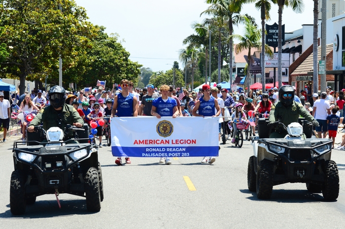 Then, it was the 76th Annual Palisades July 4th Parade. Three skydivers, Tom Falzone, Scott Smith and Annie Helliwell, jumped from a small plane 3,000 feet above Pacific Palisades to make a perfect landing at Sunset Boulevard and Swarthmore, signaling the start.