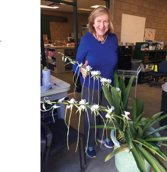 And so, with the help of another orchid society friend, we carefully padded and tied down my beloved plant into his good-sized van for its third and final trip to the Huntington, some 46 miles (74 km) away.