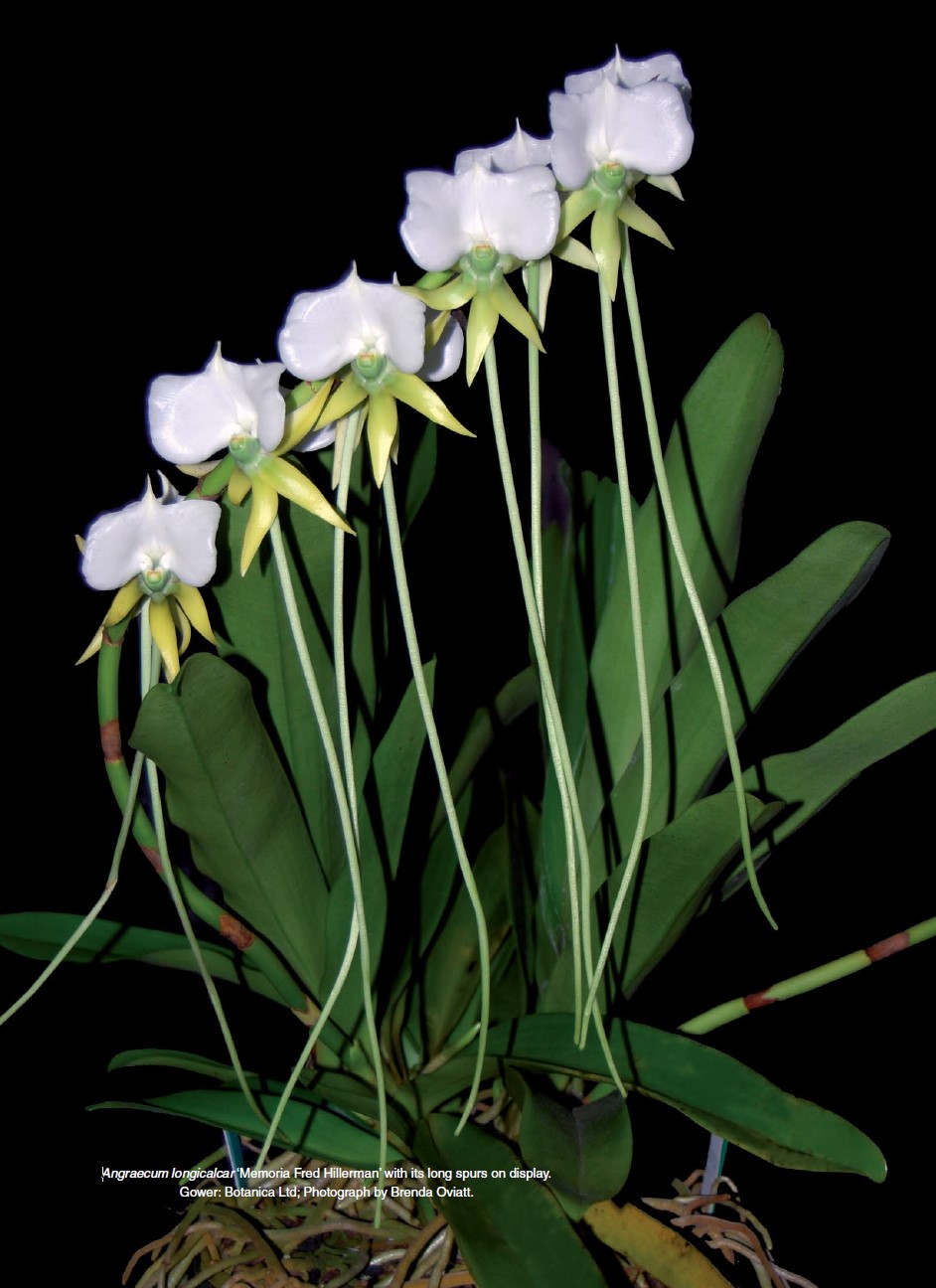They added that in the greenhouse this orchid needed bright light, lots of humidity and good air movement. The authors said that “vegetatively Angraecum longicalcar conveys the impression of strength, viability, nobility and grandeur, and in our opinion makes an ideal specimen plant.”