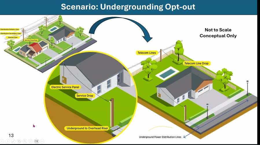 Funny thing about undergrounding power lines — at some point, you need the people whose ground you’re going under and place transformers on to sign something. A Right of Entry affidavit, they call it. Sign here, allow our equipment on your property, and we’ll schedule the actual conversation about compensation levels sometime before our board meets in Q2.