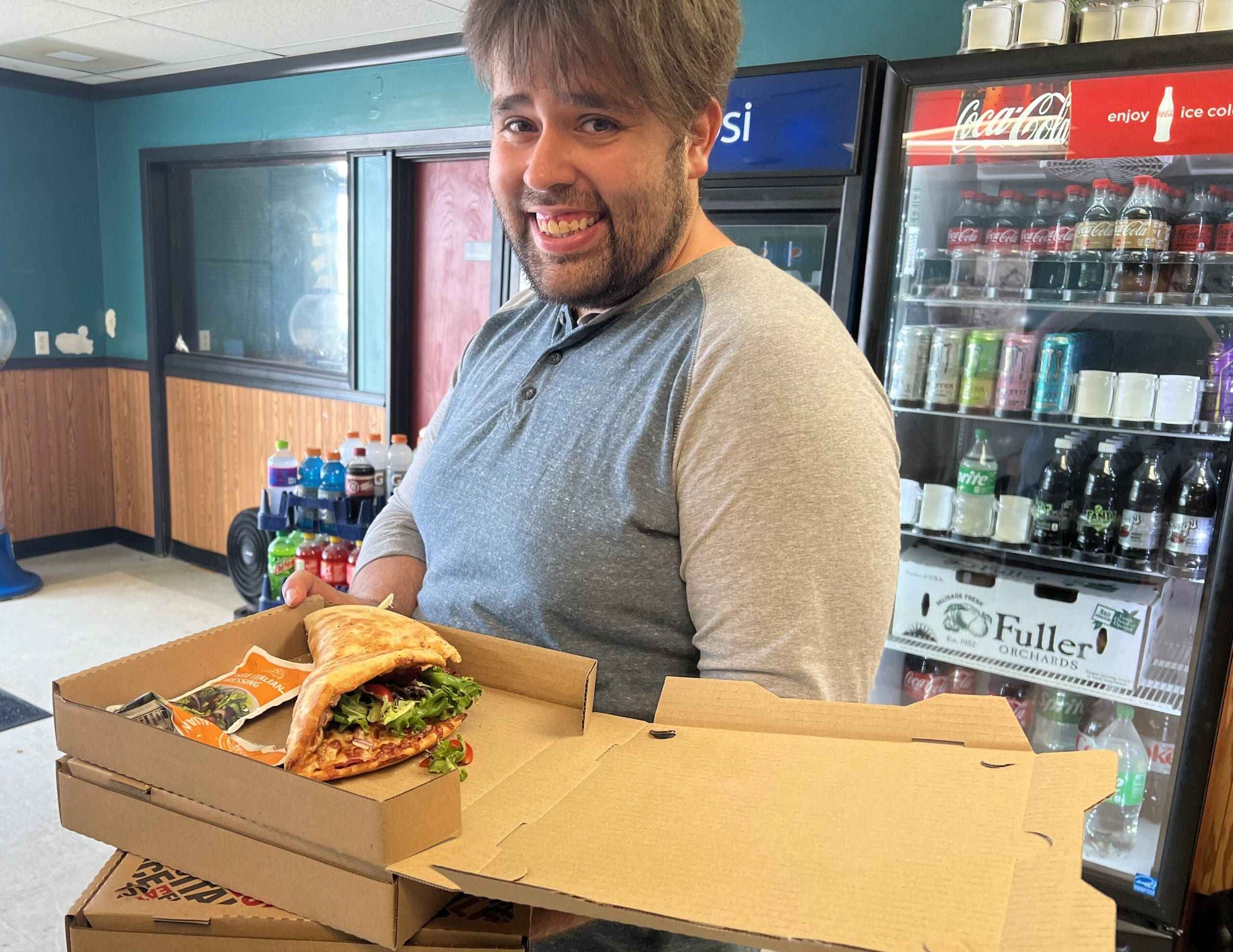 The pubwich, an invention by Warren Peterson, who owns the Pizza Shoppe on Main Street, is a cross between a calzone, a pizza and a sandwich. He makes everything