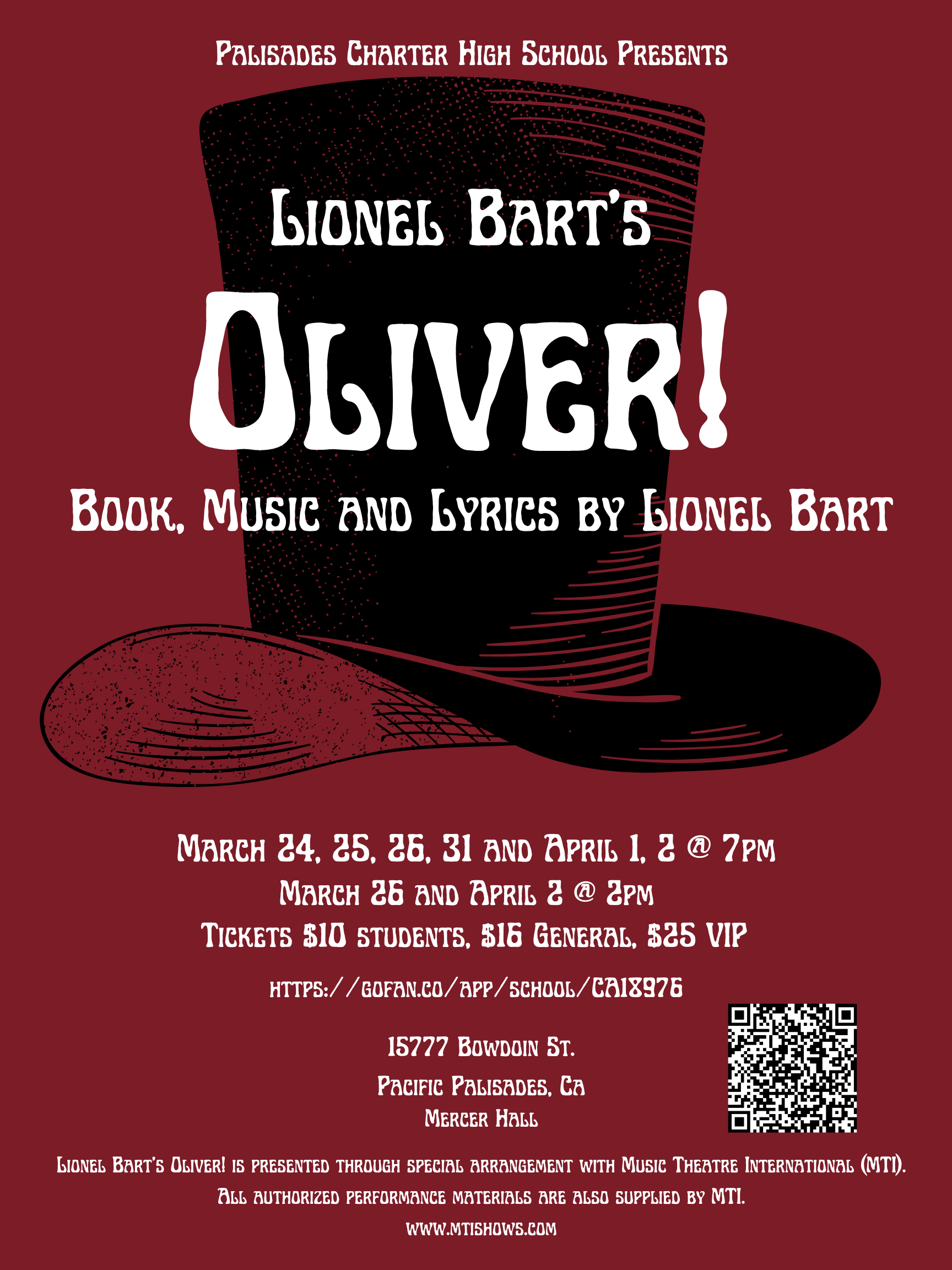 - March 23, 2022“Oliver” a British stage musical, based on the 1838 book “Oliver Twist” by Charles Dickens, will open at Palisades High School in Mercer Hall, tomorrow, Thursday, March 24.more.....