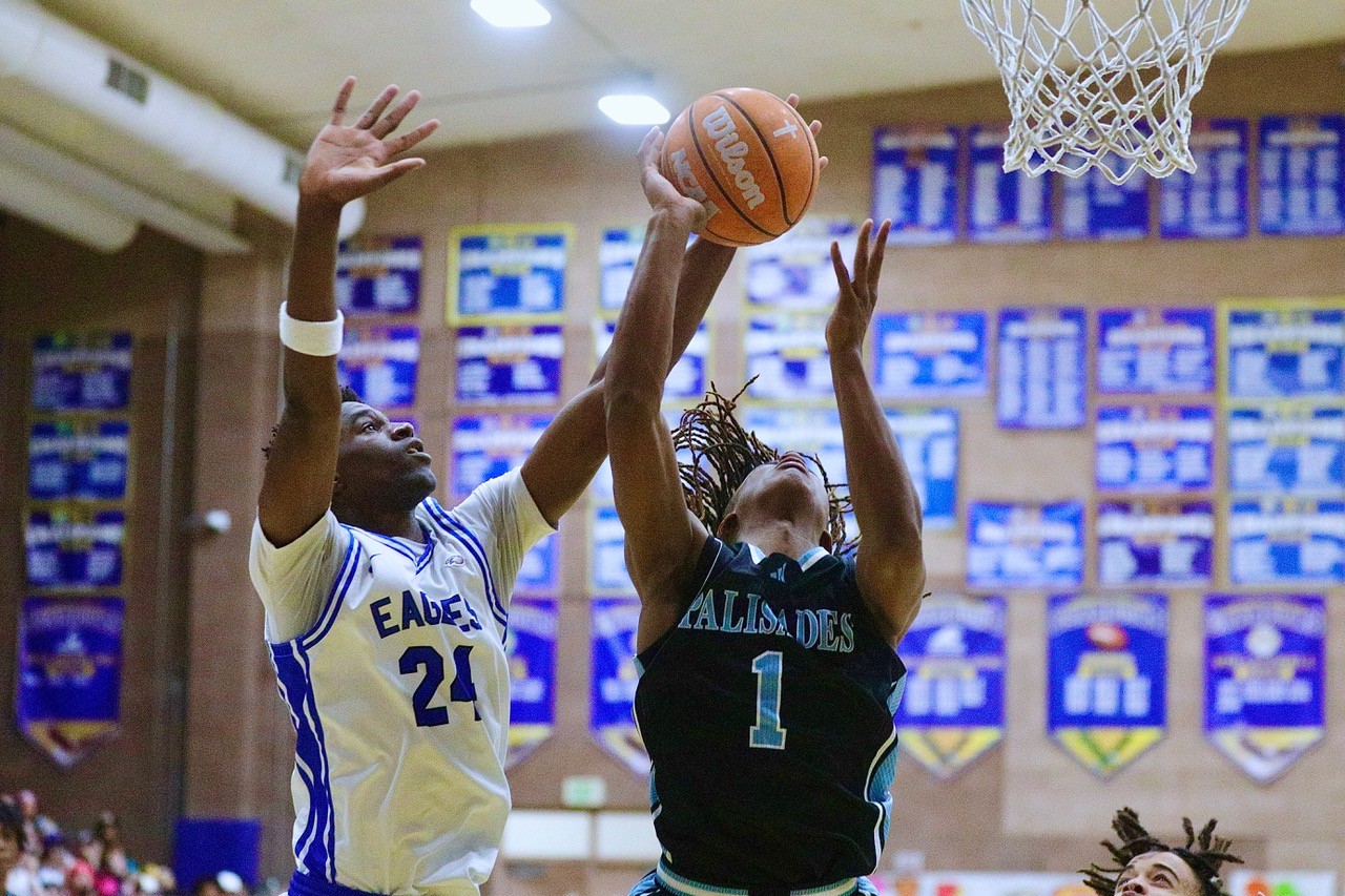 However, the Eagles (24-1) soared back to take a one-point lead on a layup and free throw by center Taiwo Daramola with 43 seconds left. After a missed shot on Palisades’ ensuing possession, Daramola got the rebound, was fouled intentionally and sank one of two free throws to make it a two-point game with 5.3 seconds remaining.