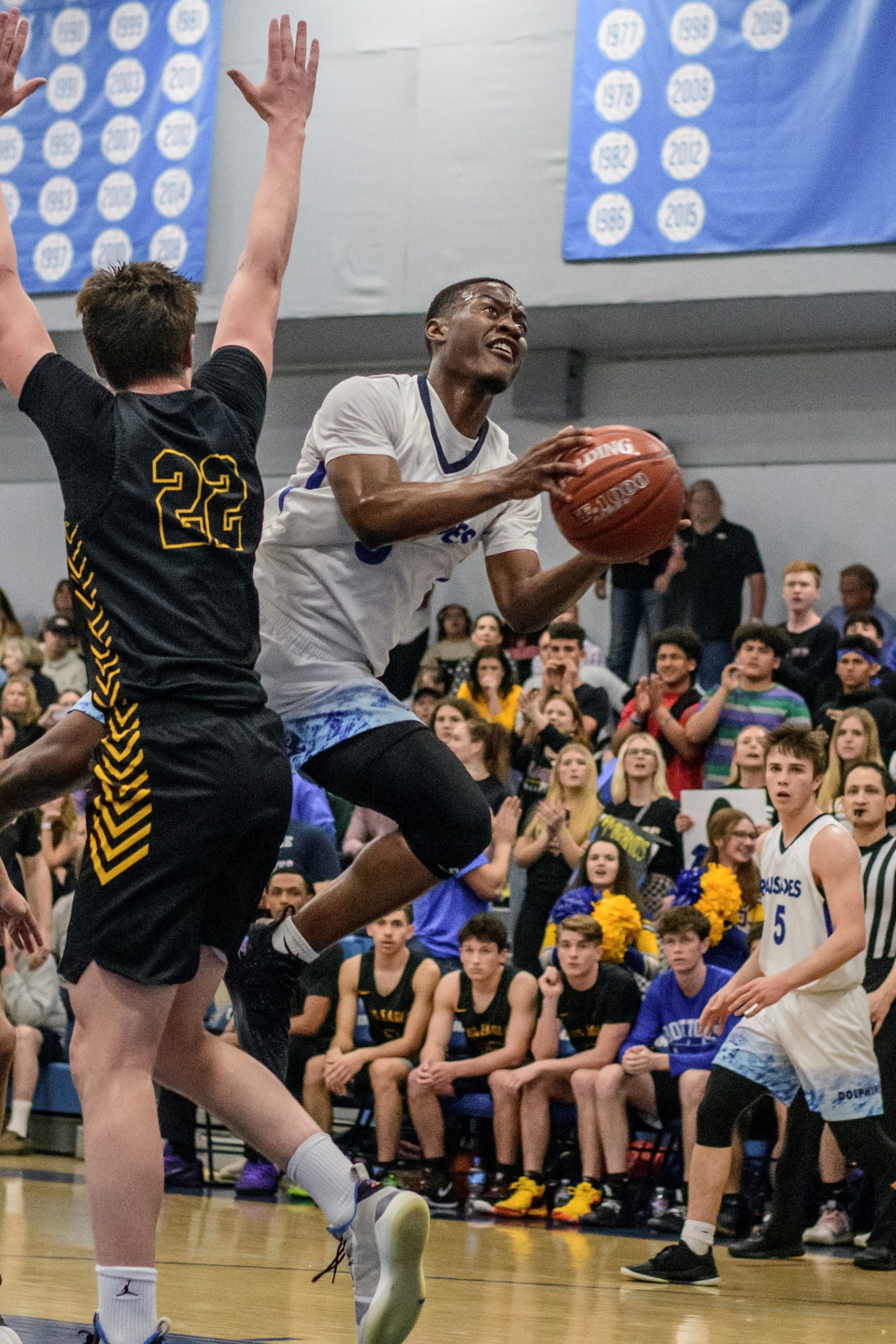 Senior Dylan G jumps goes up for two.