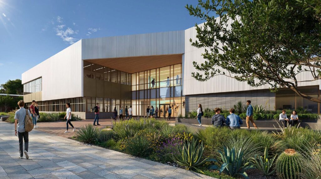 A final design meeting for the proposed replacement of Palisades High School Buildings that were destroyed or damaged by the January 2025 Palisades Fire was presented on February 12 to community members.