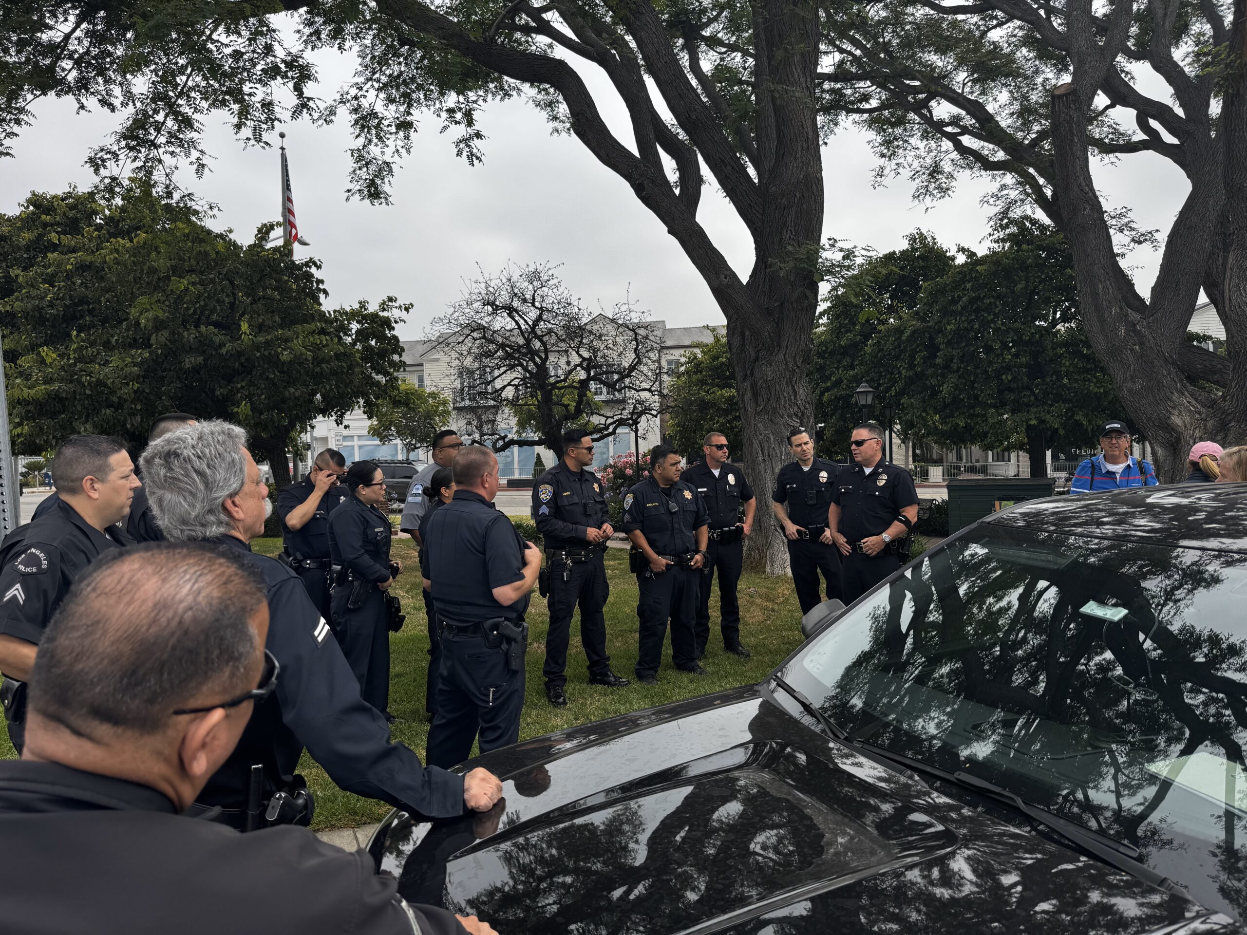 LAPD go over the new safety plan for Pacific Palisades on the Village Green on Juine 14.