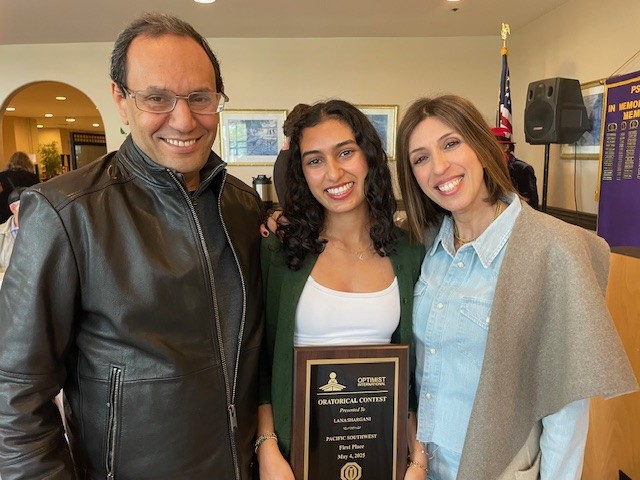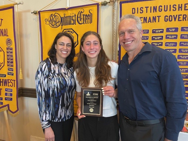 Shargani spoke about the fires in the Palisades and her displacement during them them. By taking first at the Optimist Pacific Southwest District Oratorial contest held in Simi Valley, she will move on to the Regional/World Championships Contests in Saint Louis, July 17-18.