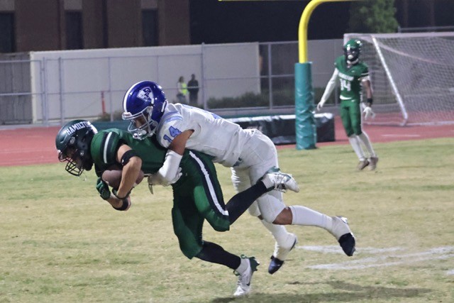 With less than a minute left in the half, Thomas connected with a pass to Demare Dezeurn from the Hamilton 30-yard line, who ran it in for a touchdown. The PAT, one of four, by sophomore Carter Schwartz was good. And it looked like Pali would go into the half 18 to 3.