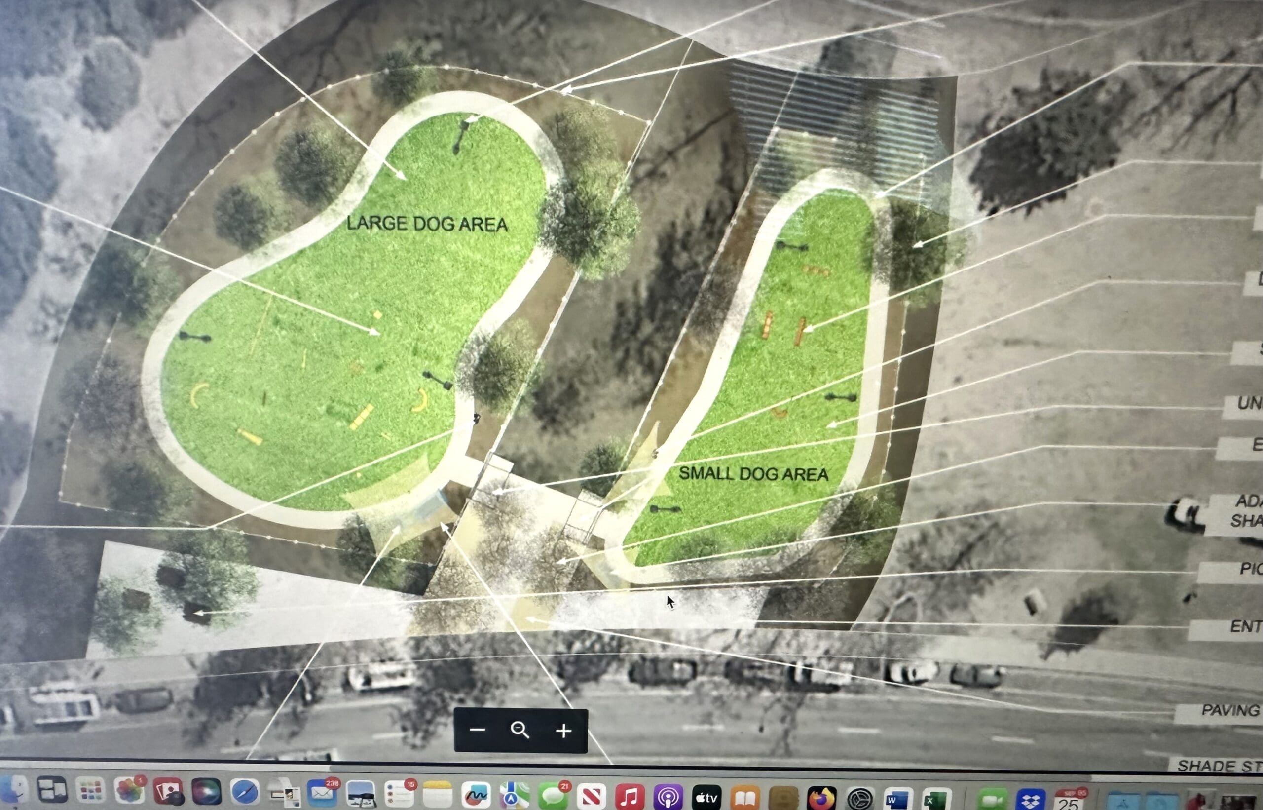 Please look at Playa Vista when designing the dog park. They have two, side by side, one for small dogs and one for large dogs. There is a stream of water running for them and benches/shade or sun, for their owners to sit. It’s the nicest dog park around! Just too far now!