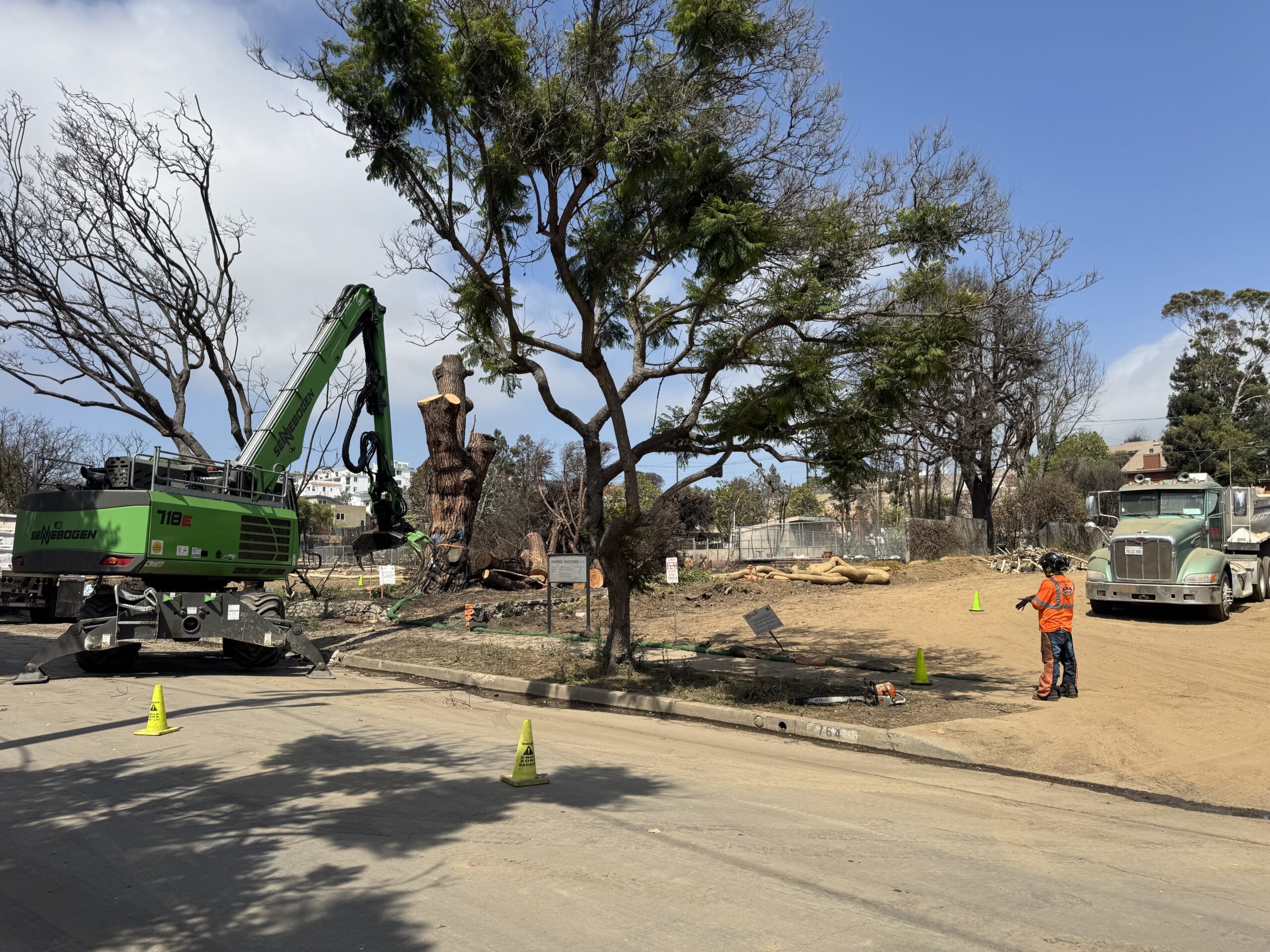 Jacaranda trees on Radcliffe, survived and are starting to bloom with purple flowers.
