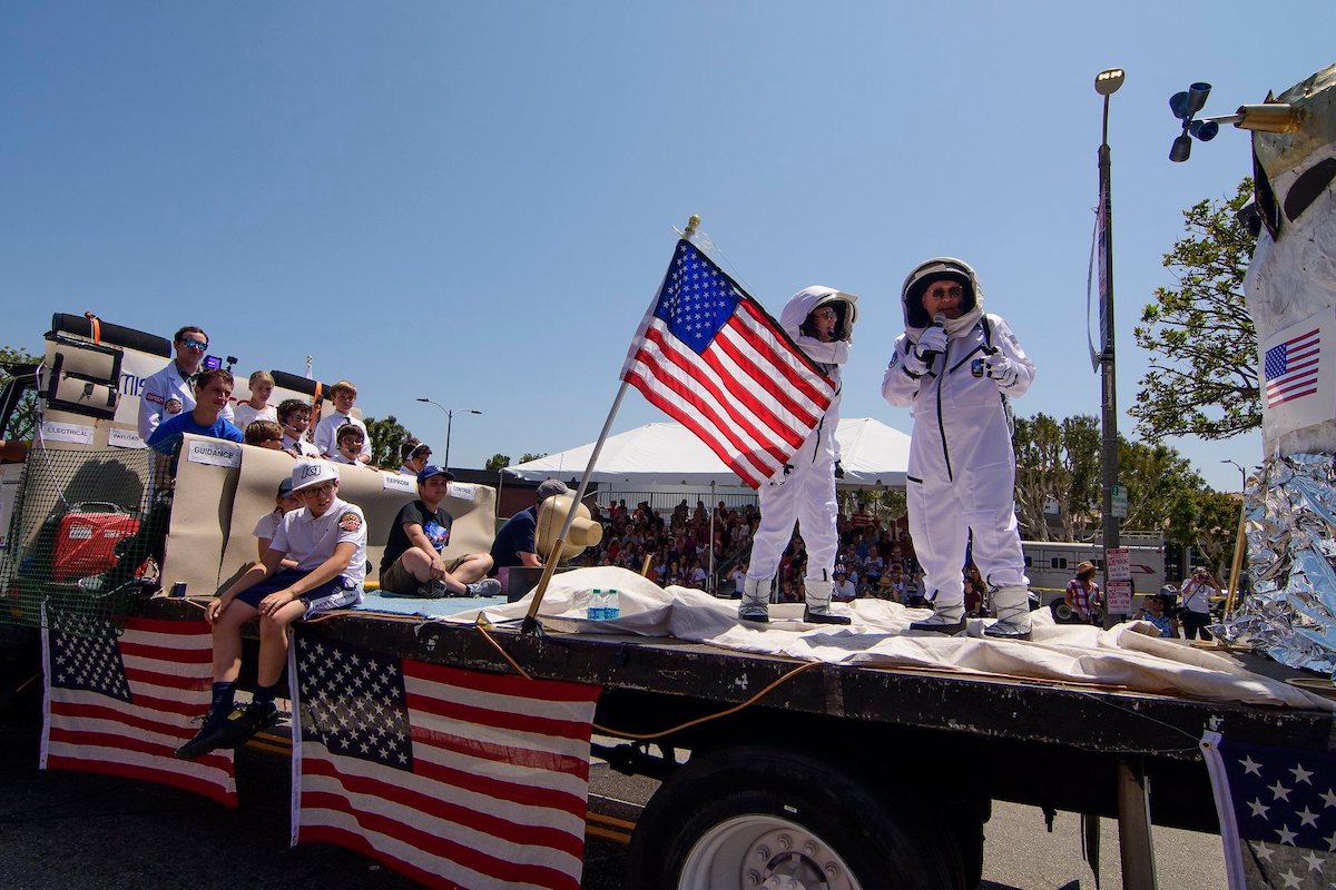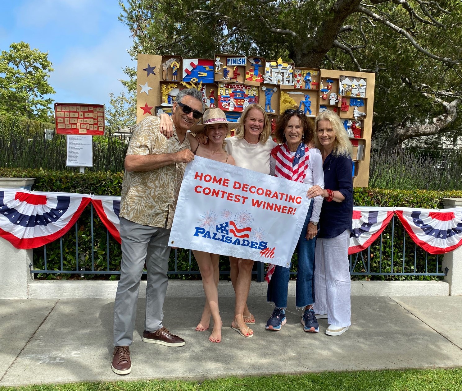 (Left to right) Honorary Palisades Mayor Eugene Levy, Lulu and Cindy Simon and contest sponsors Joan Sather and Susan Montgomery. Levy helped judge the Fourth of July home decorating contest.