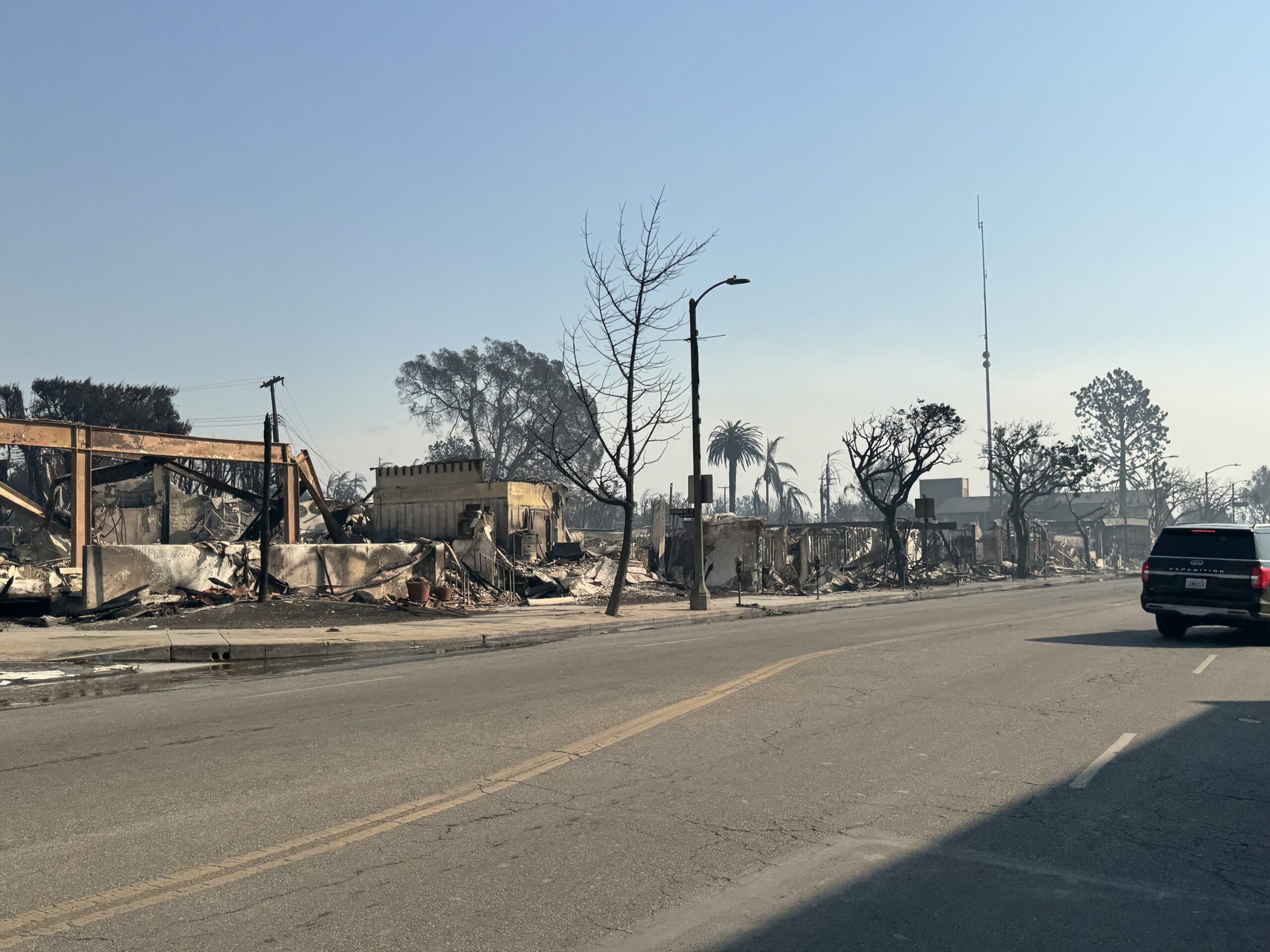 Businesses on Sunset across from Ralphs grocery store were destroyed. Station 69 at Carey was saved.
