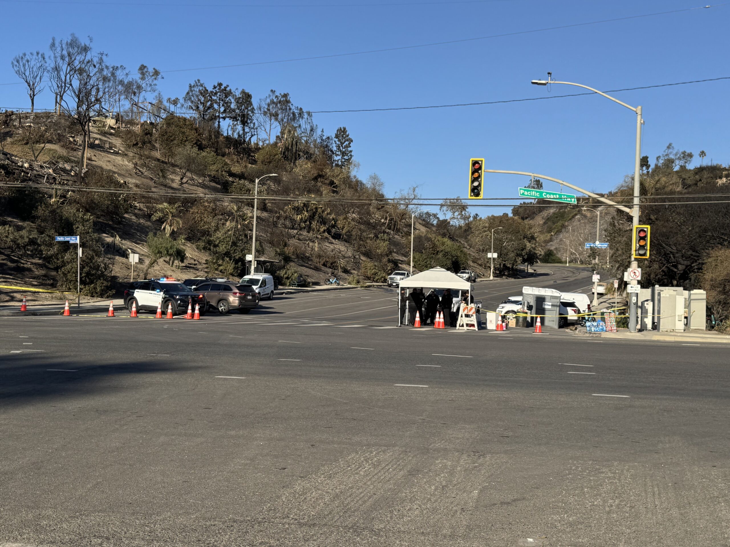 Checkpoints are at all of the entrances to Pacific Palisades to ensure only first responders and media have access to this community.