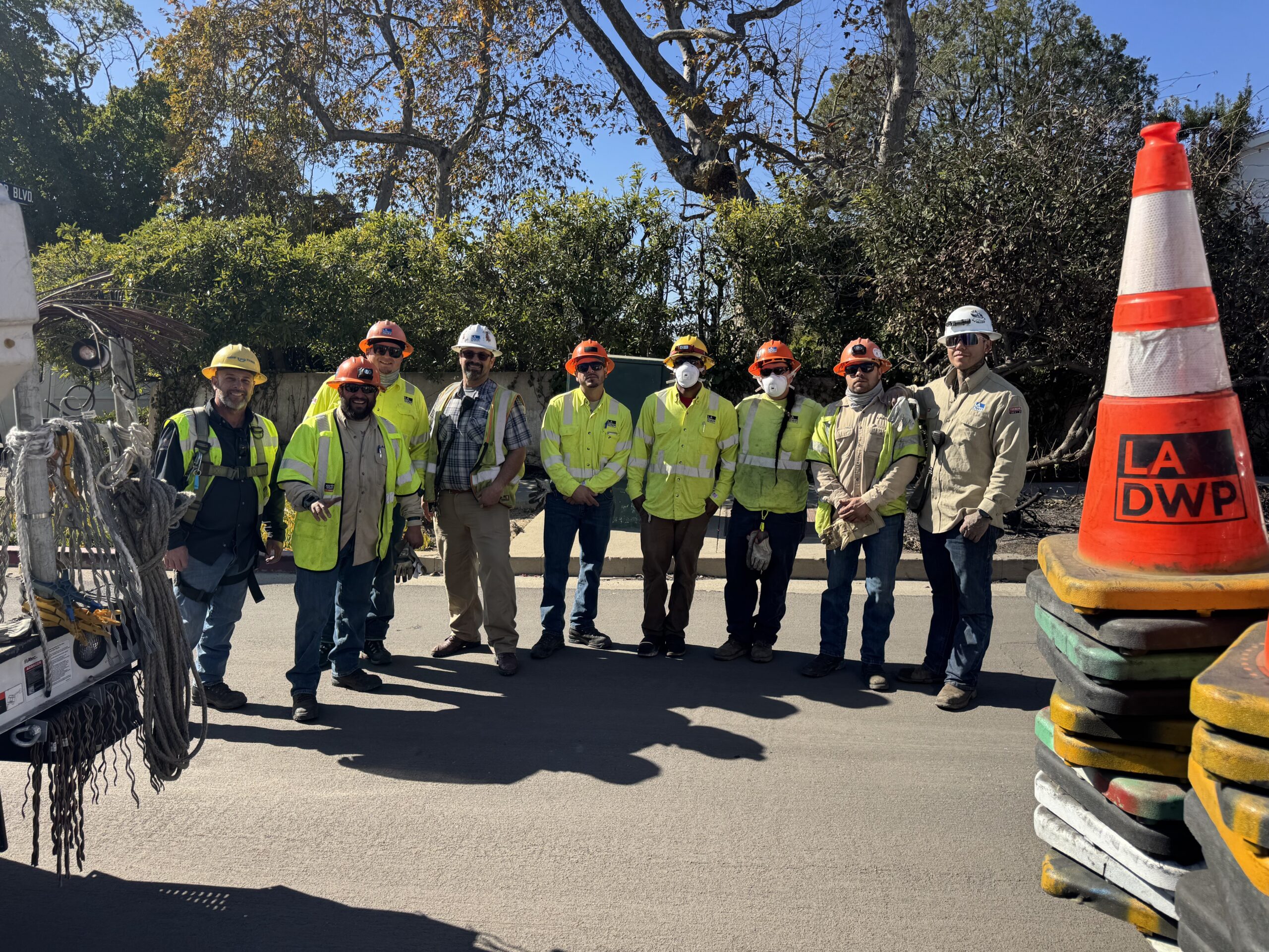 This editor was in Pacific Palisades in the upper Alphabet Street area, there were three trucks of DWP workers, working to clear the streets of wires, broken poles and fallen trees and to shut off the water.