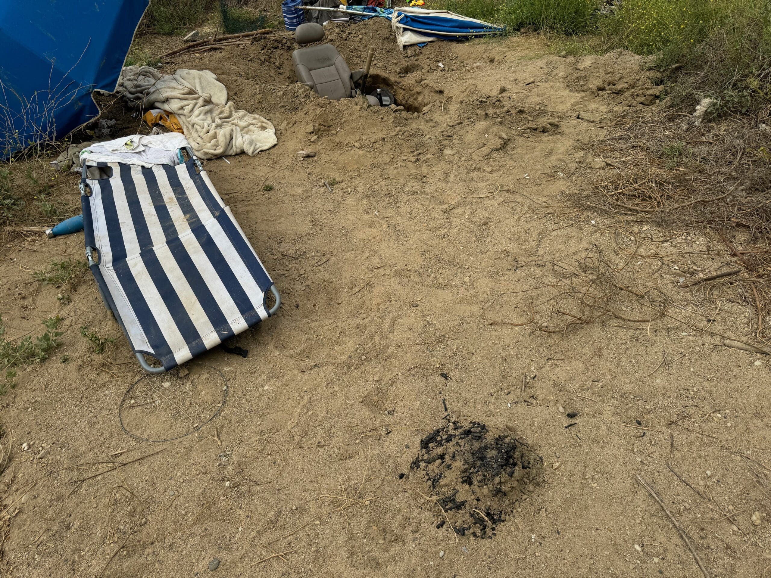 A firepit, filled in with ashes and dirt was found by the campsite.