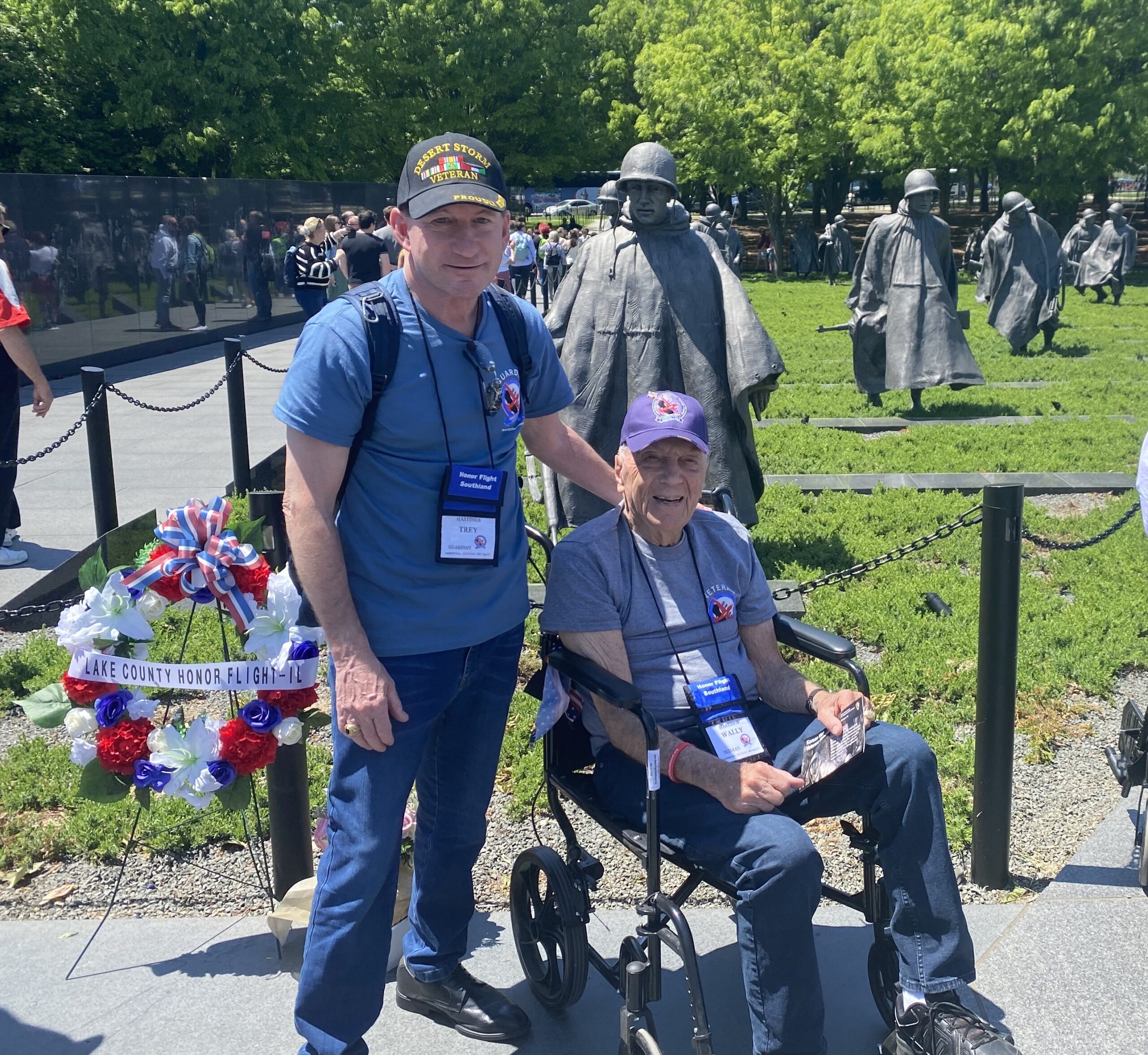 Trey (left) and Wally Hastings at the Korean Memorial.
