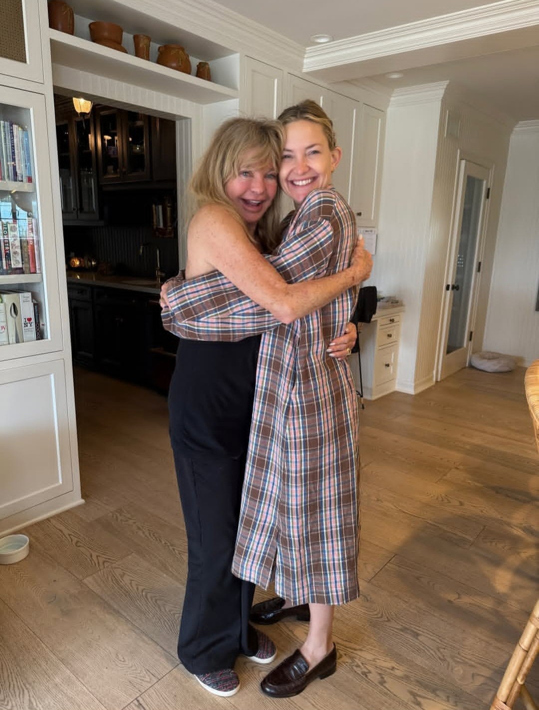 Kate Hudson in an embrace with her Oscar-winning mom, Goldie Hawn. Both are all smiles after Hudson was nominated as best actress for Song Sung Blue.