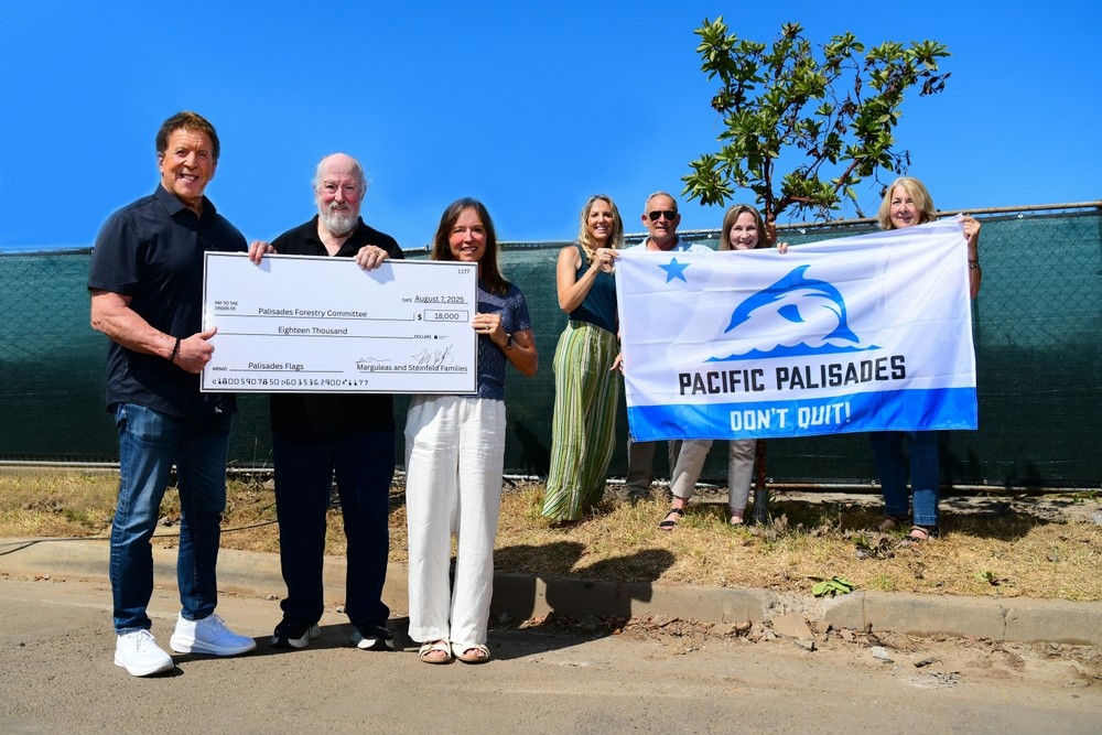 To kickstart the planting of new trees, a $18,000 check was handed to the Palisades Forestry committee by residents Tracey and Jake Steinfeld and Anthony and Sue Marguleas on August 7. Money was raised by reprinting and selling Palisades Flags.