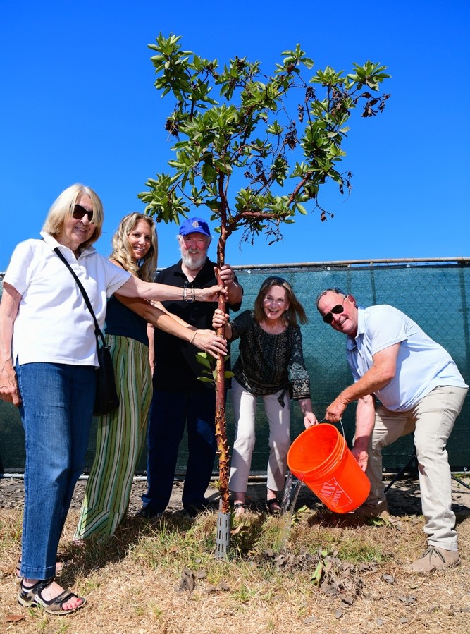 The Palisades Forestry Committee, implemented by the Pacific Palisades Community Council, started planting trees in the parkways in 2022. Among the first was a Coastal Oak planted in Founder’s Oak Island on Haverford and two trees on Hartzell. As part of the town’s Centennial celebration, the committee hoped to plant “100 trees for 100 years.”