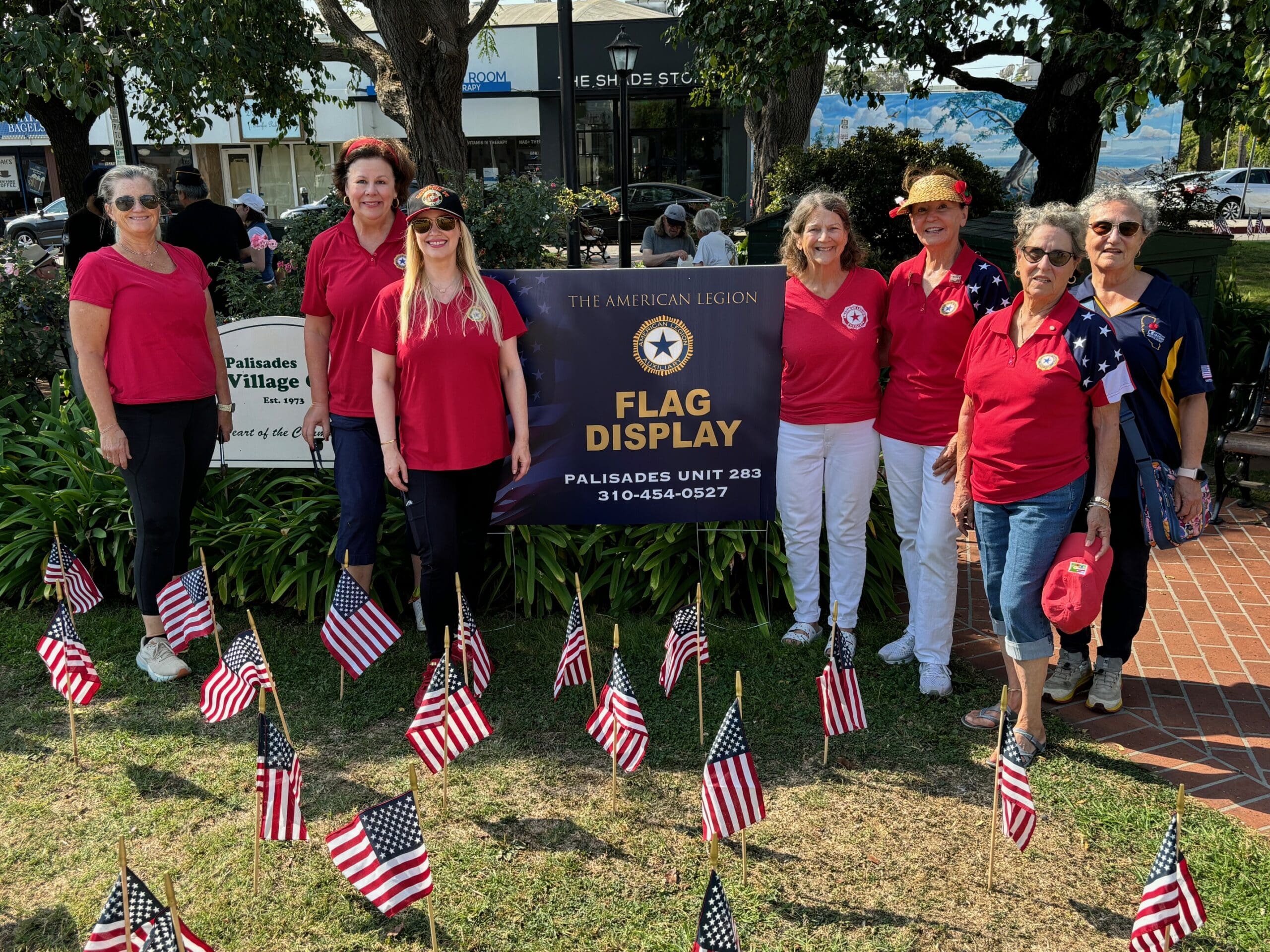 This year on September 7, members of Palisades Auxiliary Unit 283, supporters, and members of the community placed flags on the Palisades Village Green to commemorate those who died in the terrorist strikes.