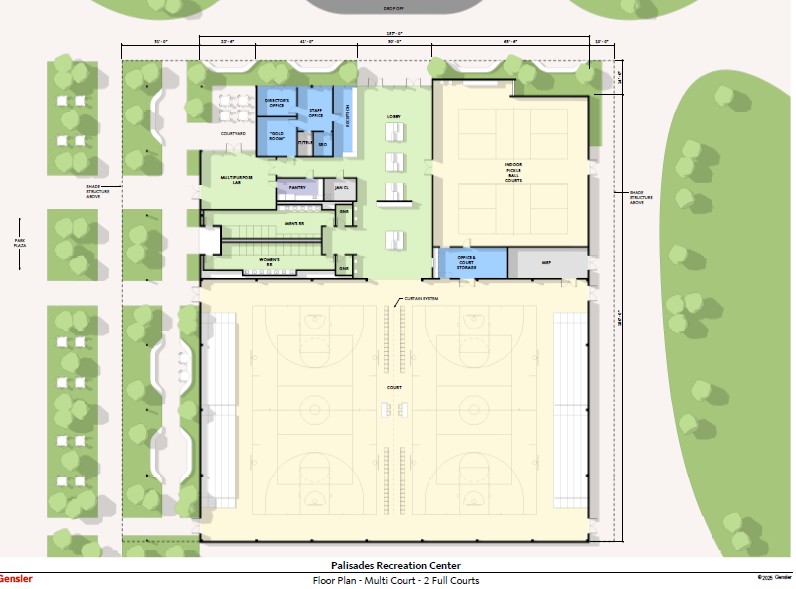 That facility would have two full basketball courts, indoor pickleball courts, a multipurpose room, offices for the staff and large restroom facilities.