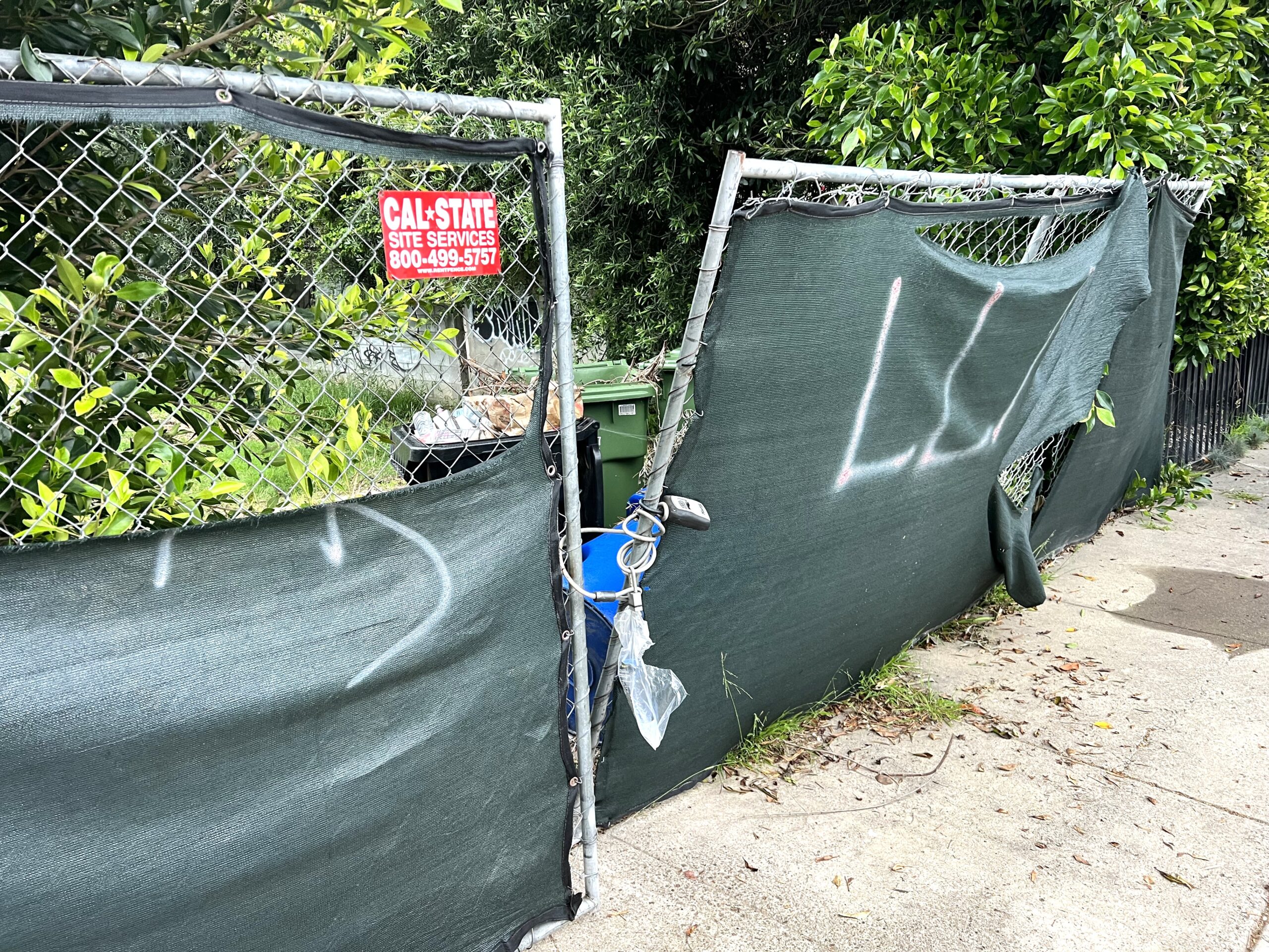Has anyone tried contacting Cal-State Site Services at the number on the sign to find out who paid for the fence? Maybe Cal-State can contact the property owner.
