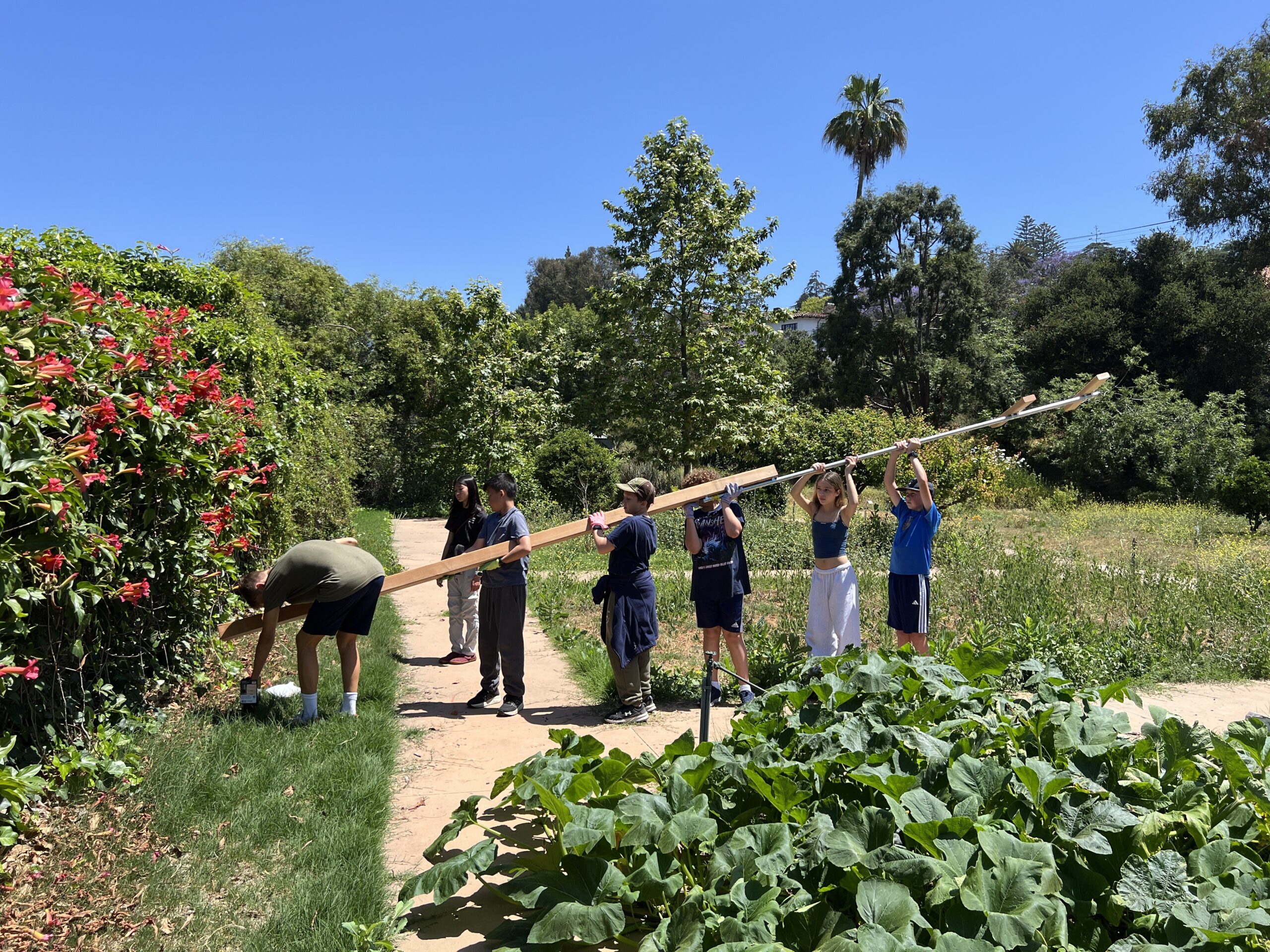 Max Szymanski had help placing a raptor pole in the Revere garden.