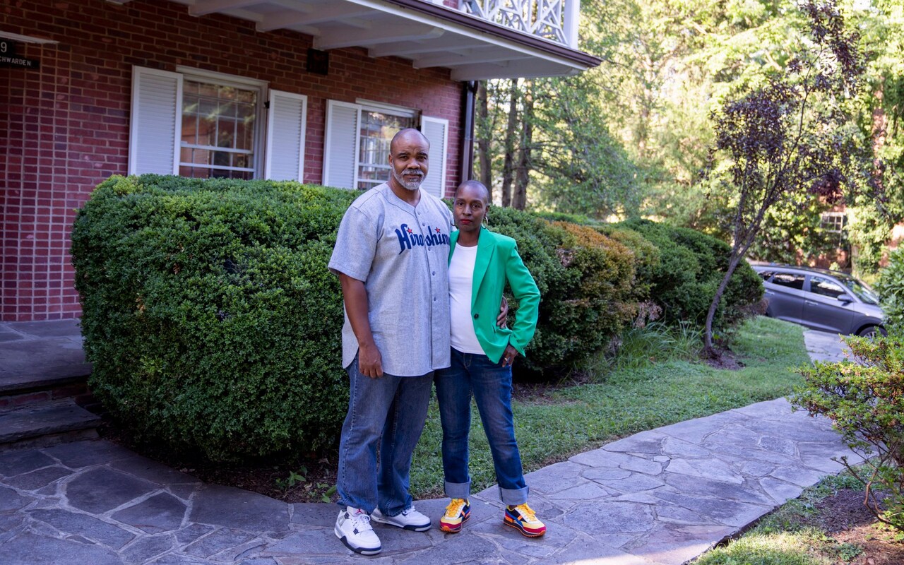 Dr. Nathan Connolly and wife Dr. Shani Mott, both professors at Johns Hopkins University, outside their Maryland home.