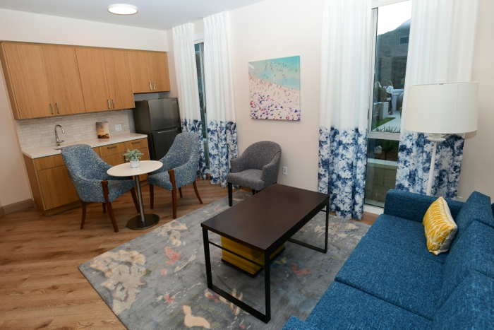 A membership fee is required. With independent living, rents are paid monthly. A studio apartment starts at $8,395, a month, a one-bedroom at $12,985, and a two bedroom is $18,845. Everything is month-to-month and if you want to add a second person to any of the rooms, it is an additional $1,500.