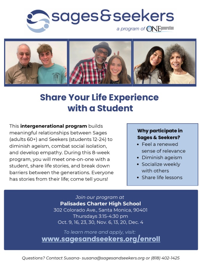 Now the program organizer Rachel Shader is looking for Sages, older adults, 60+ who will join the program, listen to students and also provide their lived experiences. The deadline to enroll is September 17.