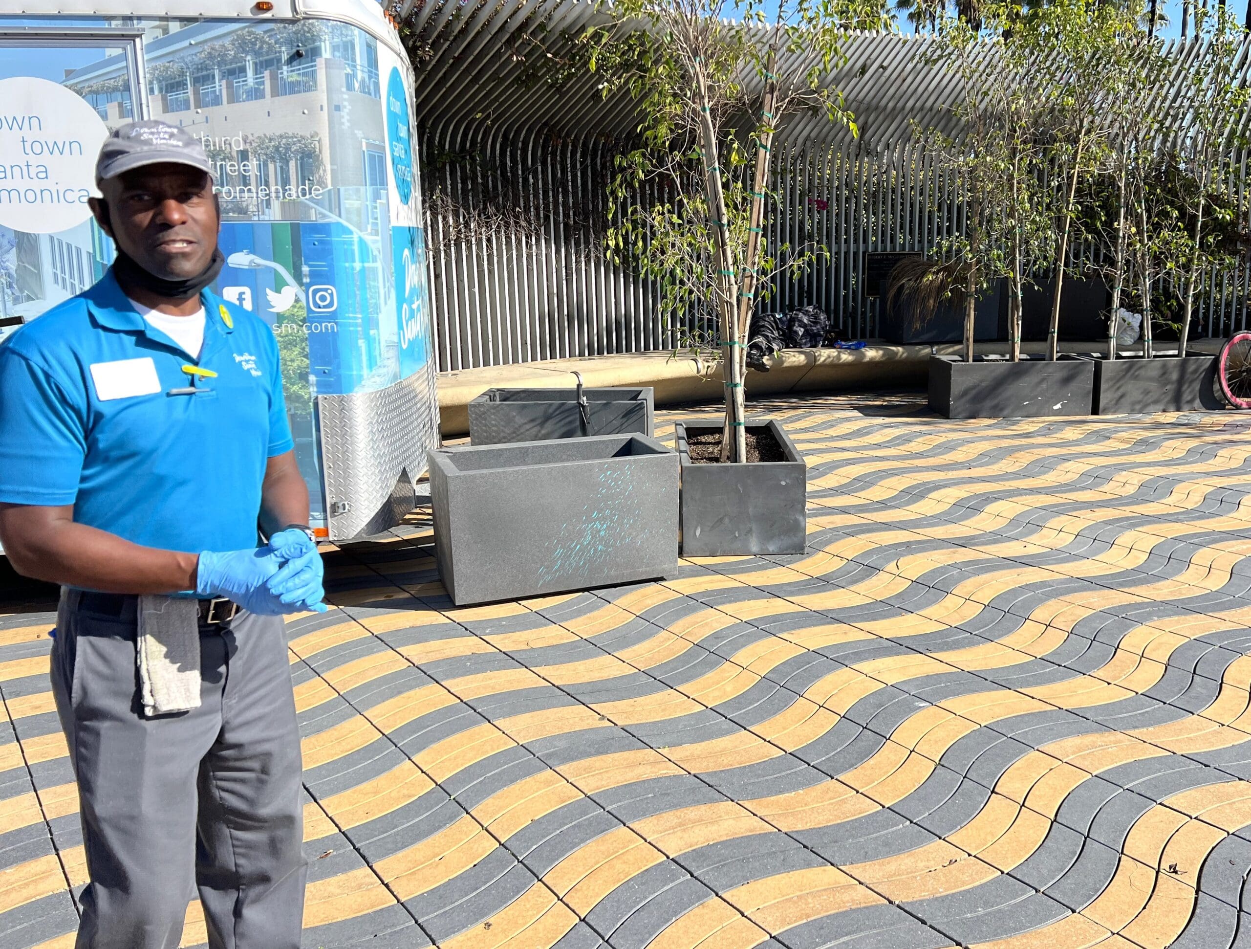 In Tongva Park, a children’s playground had a homeless man sleeping on a bench next to the play structures. An ambassador was asked if that was allowed, and he said, “I was just over there, let me go tell him to move.”