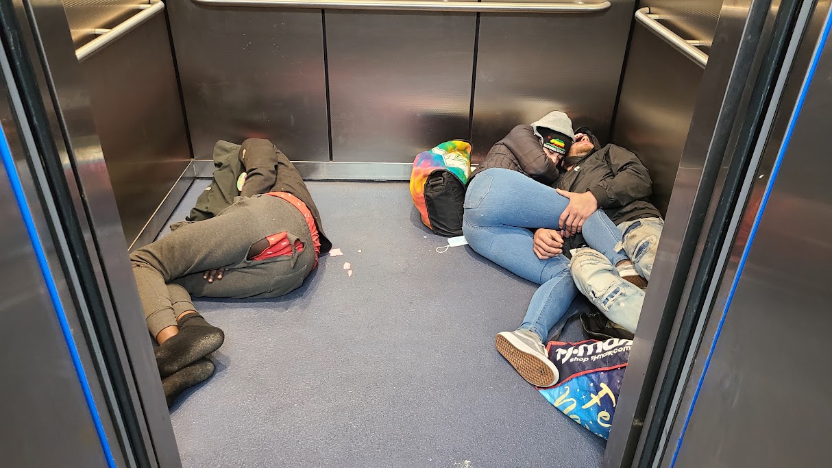 Lack of elevators in five and six story structures means there are no ADA accommodations. Additionally, the electrical outlets are being used by the homeless for phone charging.