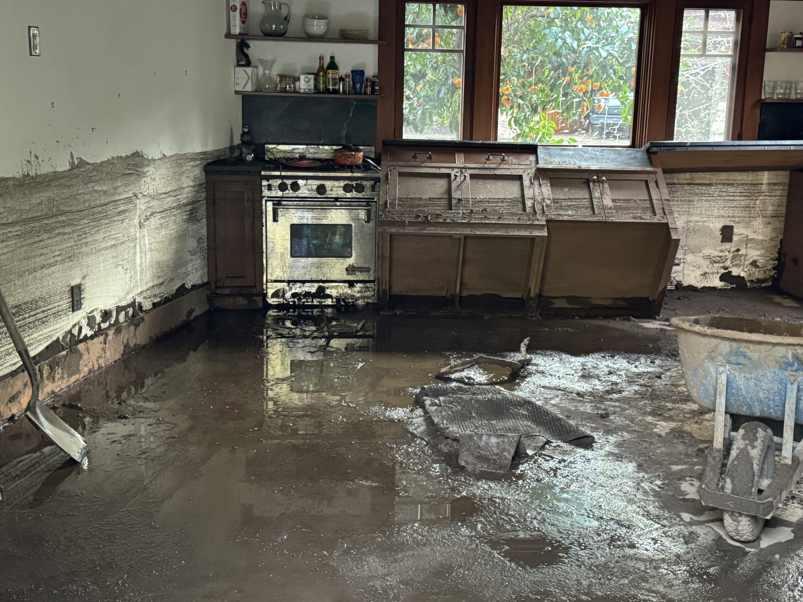 Ash/soot/fire debris was pushed from Rustic Creek and Will Rogers State Park Road into this guest house.