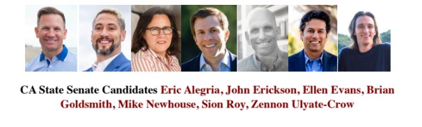Those candidates participating include Eric Alegria, John Erickson, Ellen Evans, Brian Goldsmith, Mike Newhouse, Sion Roy and Zennon Ulyate-Crow.