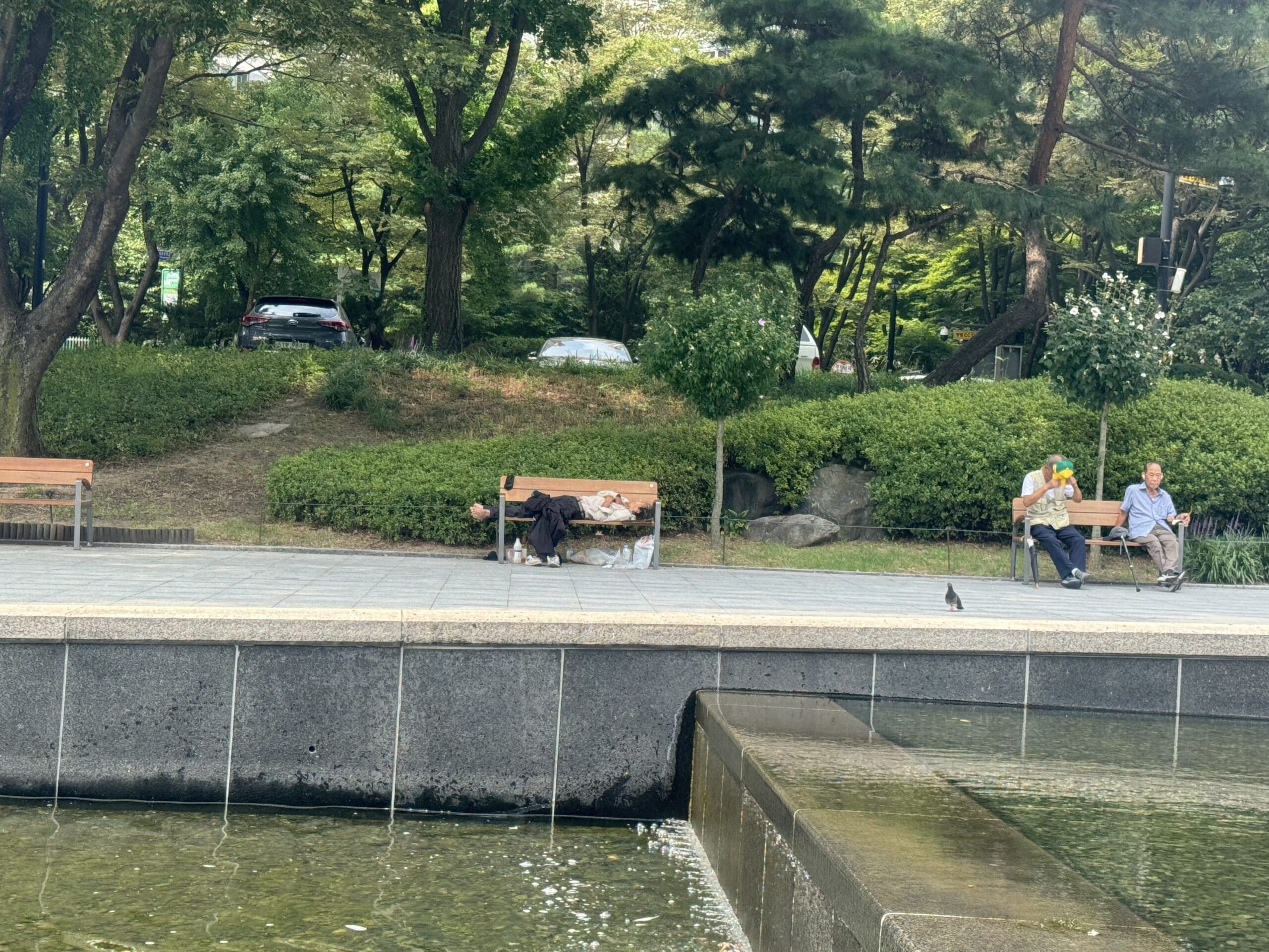 Of all the train stations, the subways and parks we visited, we saw one homeless person by Seodeamun Independence Park.